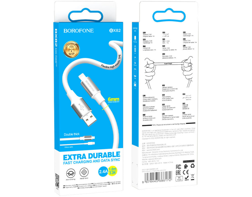 Кабель Borofone BX82, USB-Lighting, 2.4A, довжина 1м, White, BOX