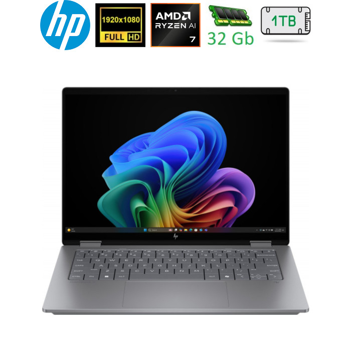 14", 1920x1200 (WUXGA), IPS, 400nits, AMD Ryzen AI 7 350 (2.0 - 5.0 ГГц), 32 ГБ, SSD - 1 ТБ, AMD Radeon Graphics, Windows 11 Home, 59 Втч, сенсорный экран, подсветка клавиатуры, украинская клавиатура, 1.39 кг, серебристый