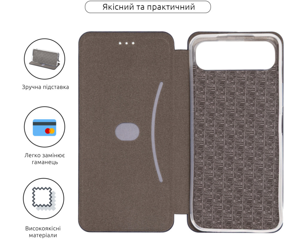 Чохол-книжка G-Case з магнітною застібкою — це стильний аксесуар, а також прекрасний захист для вашого смартфона. Він надійно захищає смартфон від подряпин, падінь та інших різних ушкоджень. Магнітна застібка щільно фіксує верхню частину чохла, на якій розташовується металева накладка — завдяки цьому мобільний пристрій завжди захищений від небажаного потрапляння бруду, вологи та пилу. Смартфон утримується в щільній і гнучкій силіконовій капсулі, яка захистить його у разі падіння, а також допоможе зберегти гарний зовнішній вигляд — на корпусі пристрою не залишиться подряпин та інших слідів експлуатації. Місткий картхолдер, який розташовується у внутрішній частині чохла, здатний легко замінити гаманець і прекрасно вміщує в собі банківські картки, а також купюри різного номіналу. |