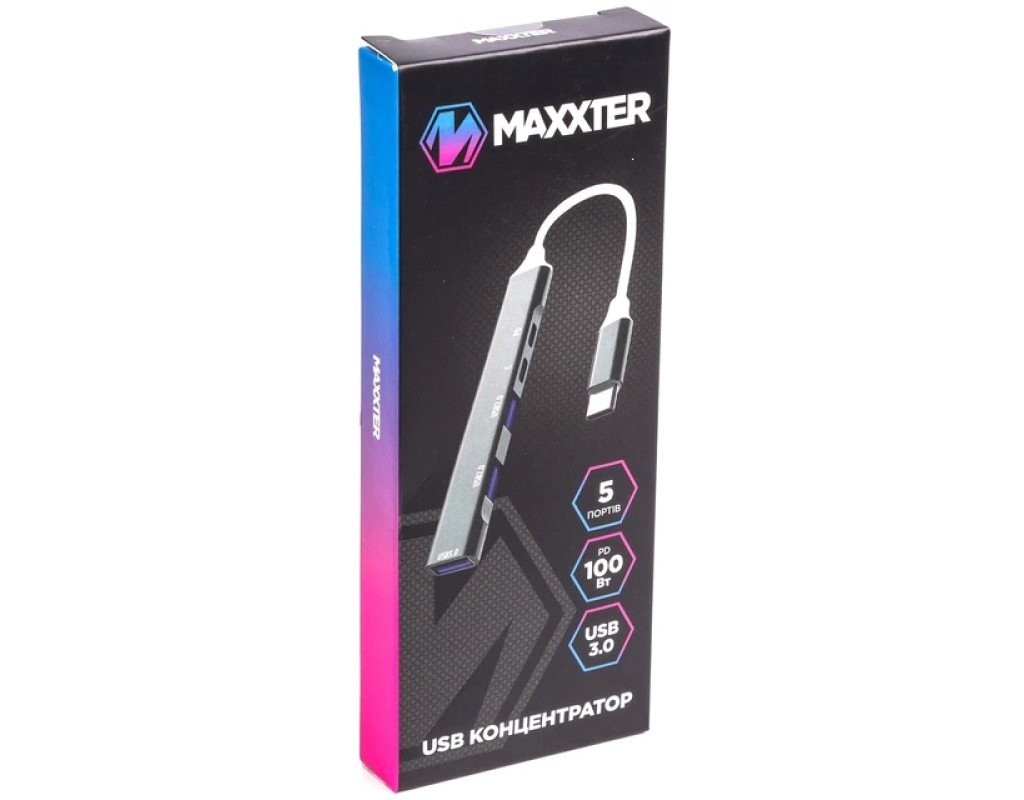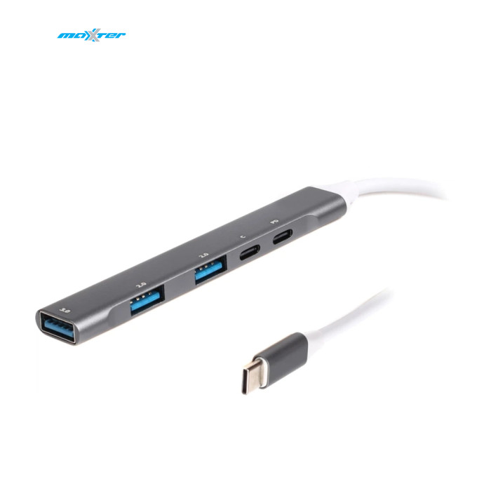 Концентратор Maxxter USB-C to 1xUSB 3.0 + 2xUSB 2.0 + 1xUSB-C PD100W + 1xUSB-C (HU3C-4P1PD-01)