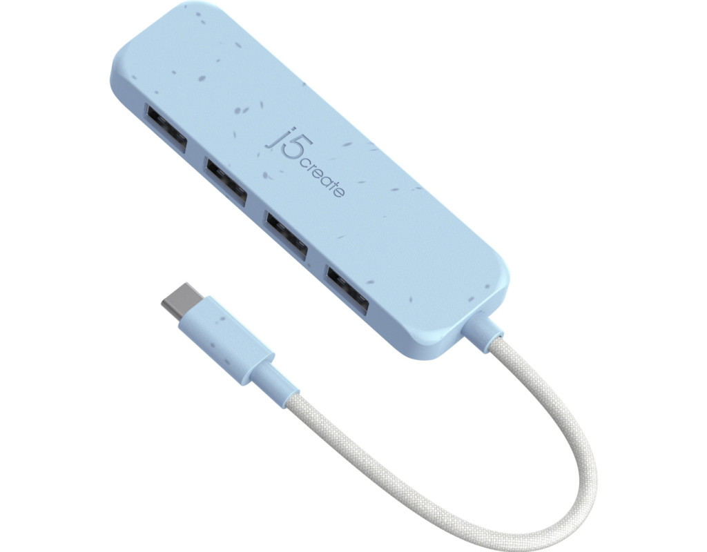 Концентратор J5create USB-C to 4xUSB-A 3.2 10Gbps cyan (JCH341EC-N)