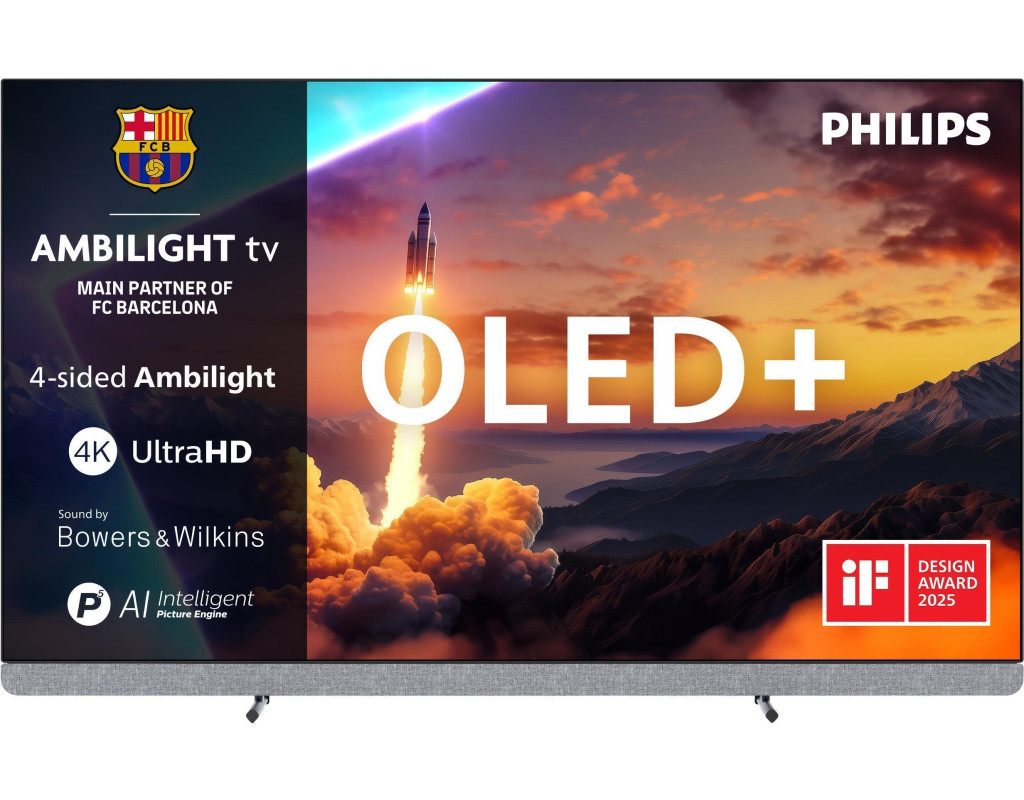 | Телевизор Philips 55OLED910/12 — 55-дюймовая OLED+-модель чёрного цвета с разрешением 4K UHD 3840×2160 и частотой обновления 144 Гц для динамичных сцен. Технология Ambilight с четырьмя сторонами создаёт расширенное освещение, синхронизирующееся с экраном, музыкой или игрой. Smart Google TV с 32 ГБ памяти обеспечивает доступ к Netflix, YouTube, Disney+ и другим приложениям, с поддержкой голосового управления через Google Assistant и Alexa. Аудиосистема Bowers & Wilkins 3.1 каналов мощностью 80 Вт с Dolby Atmos и сабвуфером передаёт объёмный звук. Процессор P5 AI Perfect Picture Engine оптимизирует изображение с HDR10+, Dolby Vision и VRR для игр. |