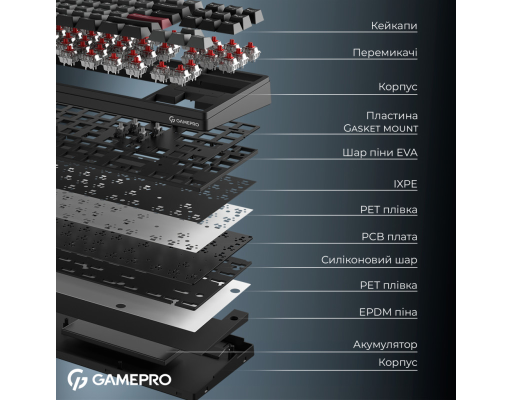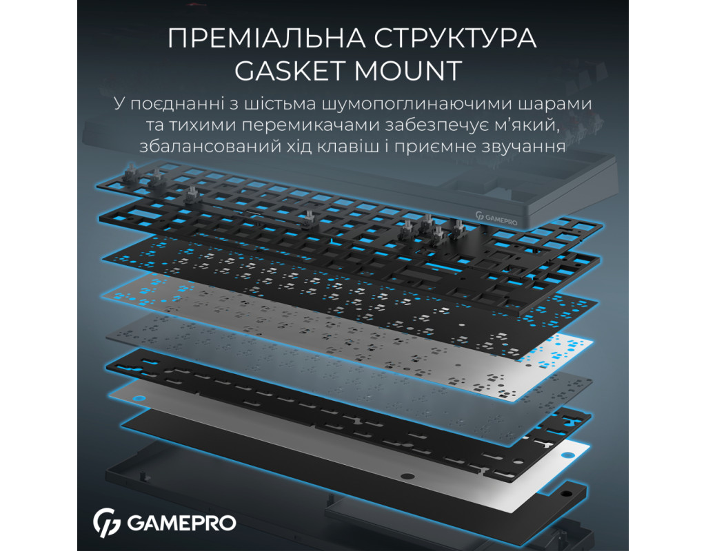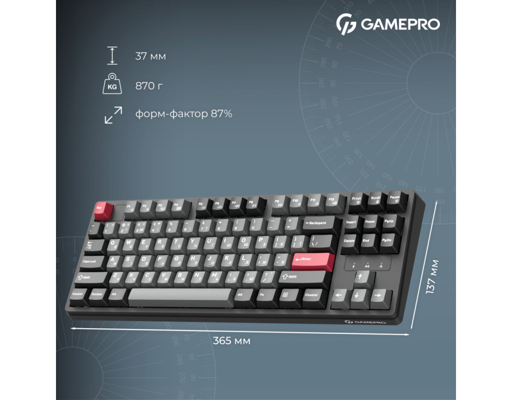 GamePro Asgard Ragnar — современная беспроводная механическая клавиатура, созданная для сочетания компактности, премиальных материалов и комфортного печатания в любых условиях. Ее продуманный 87% форм-фактор обеспечивает оптимальный баланс между функциональностью и экономией пространства. Смазанные линейные Keychron Super Switch Red, известные своим плавным, равномерным ходом и очень тихой работой. Это «silent» переключатели, которые обеспечивают минимальный шум без потери четкости срабатывания. Ragnar имеет gasket-mount конструкцию с шестью слоями шумопоглощения. Такая конструкция придает клавиатуре мягкую упругость при печати и обеспечивает глухой, приятный акустический профиль. Шумоизоляционные материалы сглаживают вибрации корпуса и смягчают звук каждого нажатия, создавая комфортную, сбалансированную звуковую картину. Клавиатура поддерживает проводной режим (USB-C), Bluetooth 5.2 и 2.4 ГГц через ресивер, а емкая батарея на 4000 мА*ч гарантирует длительную автономность без подзарядок. Модель оснащена регулируемым RGB с большим количеством эффектов, что позволяет создать собственную атмосферу во время работы или игр. PBT кейкапы профиля Cherry, устойчивые к истиранию и с приятной матовой текстурой, обеспечивают долговечность и комфорт при печати. Благодаря hot-swap сокетам можно легко заменять переключатели. GamePro Asgard Ragnar — это сбалансированная, тихая, технологичная и стильная клавиатура, которая сочетает в себе современный комфорт, качественные материалы и продуманную конструкцию. |
