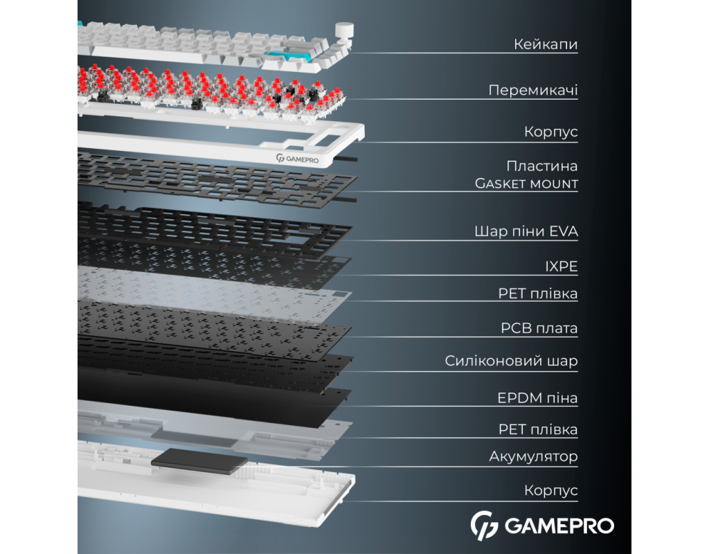 GamePro Asgard Yord — современная беспроводная механическая клавиатура, созданная для сочетания компактности, премиальных материалов и комфортного печатания в любых условиях. Ее продуманный 75% форм-фактор обеспечивает оптимальный баланс между функциональностью и экономией пространства. Смазанные линейные Keychron Super Switch Red, известные своим плавным, равномерным ходом и очень тихой работой. Это «silent» переключатели, которые обеспечивают минимальный шум без потери четкости срабатывания. Yord имеет gasket-mount конструкцию с шестью слоями шумопоглощения. Такая конструкция придает клавиатуре мягкую упругость при печати и обеспечивает глухой, приятный акустический профиль. Шумоизоляционные материалы сглаживают вибрации корпуса и смягчают звук каждого нажатия, создавая комфортную, сбалансированную звуковую картину. Клавиатура поддерживает проводной режим (USB-C), Bluetooth 5.2 и 2.4 ГГц через ресивер, а емкая батарея на 4000 мАч гарантирует длительную автономность без подзарядок. Модель оснащена регулируемым RGB с большим количеством эффектов, что позволяет создать собственную атмосферу во время работы или игр. PBT кейкапы профиля Cherry, устойчивые к истиранию и с приятной матовой текстурой, обеспечивают долговечность и комфорт при печати. Благодаря hot-swap сокетам можно легко заменять переключатели. GamePro Asgard Yord — это сбалансированная, тихая, технологичная и стильная клавиатура, которая сочетает в себе современный комфорт, качественные материалы и продуманную конструкцию. |