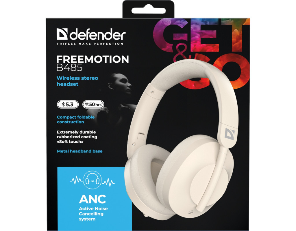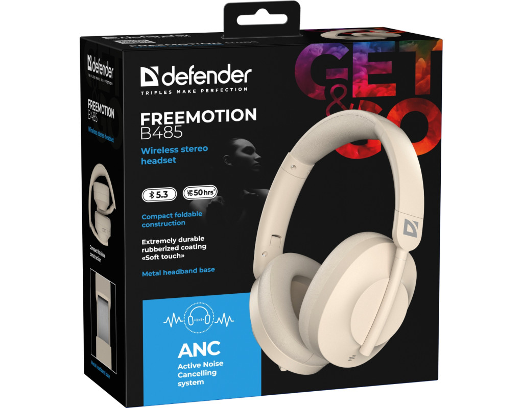 Гарнітура Defender FreeMotion B485 Bluetooth+3,5мм+USB-C, ANC Beige