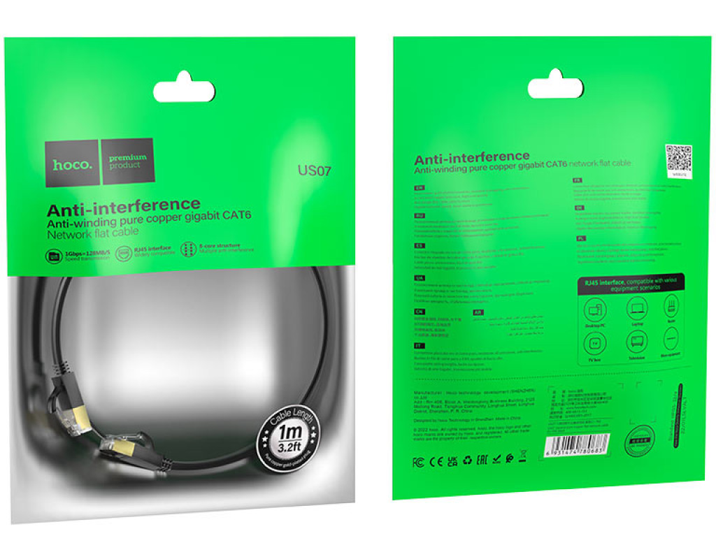 Патч-корд литий HOCO US07, FTP, RJ45, Cat.6, 1,0m, чорний