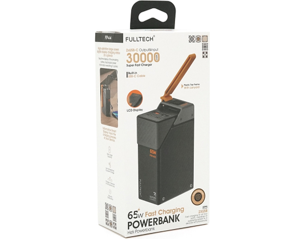 Зарядное устройство PowerBank FULLTECH PRIME 30000mAh для быстрой зарядки USB и Type-C Портативное зарядное устройство PowerBank FULLTECH PRIME 30000mAh – это мощный внешний источник питания, предназначенный для интенсивного ежедневного использования. Он объединяет высокую емкость, поддержку современных протоколов быстрой зарядки PD65W и 22.5W, универсальные порты USB и Type-C, а также удобную индикацию заряда на LED-дисплее. Такая конфигурация особенно подходит пользователям, активно путешествующим, работающим вне офиса, часто использующим ноутбук, смартфон, планшет и другие гаджеты без доступа к розетке. Модель разработана брендом FULLTECH PRIME, специализирующимся на портативной электронике и соблюдающим международные стандарты безопасности. PowerBank проходит многоуровневый контроль качества, производство на современных линиях в Китае позволяет сочетать надежность, стабильную работу и оптимальное соотношение габаритов к емкости. Благодаря этому вы получаете не просто дополнительную батарею, а продуманный инструмент для поддержания автономности всей вашей техники. Высокая емкость 30000mAh для максимальной автономности Емкость 30000mAh позволяет многократно заряжать смартфоны, наушники, смарт-часы и другие аксессуары, а также существенно продлить время работы планшетов и ноутбуков. В реальных условиях это означает несколько полных зарядок современного смартфона, возможность питать планшет в течение всего рабочего дня или поддерживать работу ультрабука во время путешествий, командировок или обучения. Такой запас энергии особенно полезен тем, кто часто бывает в пути: водителям, представителям выездных сервисных служб, фрилансерам, путешественникам, студентам и всем работающим с техникой вне офиса. Вы можете одновременно питать несколько устройств – например смартфон, наушники и экшн-камеру – не беспокоясь, что PowerBank быстро разрядится. Это позволяет планировать день без постоянного поиска розетки. Быстрая зарядка PD65W и 22.5W: экономия времени на каждой сессии зарядки PowerBank FULLTECH PRIME 30000mAh поддерживает технологию Power Delivery (PD) мощностью до 65 Вт через порт Type-C. Такой уровень мощности позволяет не только быстро подзаряжать смартфоны, но и эффективно питать совместимые ноутбуки, ультрабуки, планшеты и другие устройства с поддержкой PD. Для многих пользователей это реальная альтернатива сетевому адаптеру: в поезде, самолете или кафе можно зарядить ноутбук без доступа к стационарной розетке. Дополнительная поддержка быстрой зарядки 22.5W (рассчитана в частности на современные смартфоны и гаджеты с протоколами быстрой зарядки через USB) позволяет получить значительный процент заряда за короткое время. Для активных пользователей это важно: достаточно подключить телефон к PowerBank на 15–30 минут, чтобы снова иметь возможность общаться, работать или пользоваться навигацией. Оптимизированные алгоритмы распределения мощности между портами обеспечивают стабильную работу даже при одновременной зарядке нескольких устройств. PowerBank "общается" с подключенной техникой с помощью стандартов PD и скоростных протоколов, автоматически определяя оптимальные параметры тока и напряжения для безопасной и быстрой зарядки. Безопасная быстрая зарядка с многоуровневой защитой Реализация быстрой зарядки требует продуманных решений по части безопасности. FULLTECH PRIME использует современные элементы п