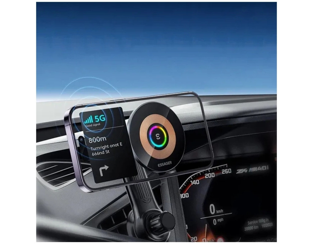 Essager Arpege 15W Magnetic Wirless Car Charger с телефоном Holder Function (Rotate Version) Black (EZJCX-GY01B-Z) - Держатель для телефона с магнитной фиксацией для автомобиля не только обеспечивает удобство и безопасность во время вождения, но и имеет функцию беспроводной зарядки. Он поддерживает быструю зарядку до 15 Вт и совместим с большинством смартфонов, включая iPhone и Android. Держатель оснащен 16 встроенными магнитами типа N52, надежно фиксирующими телефон даже на неровных дорогах. Возвратный механизм на 360° позволяет настраивать оптимальный угол обзора для комфортного пользования. Основные характеристики: