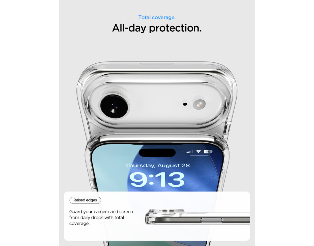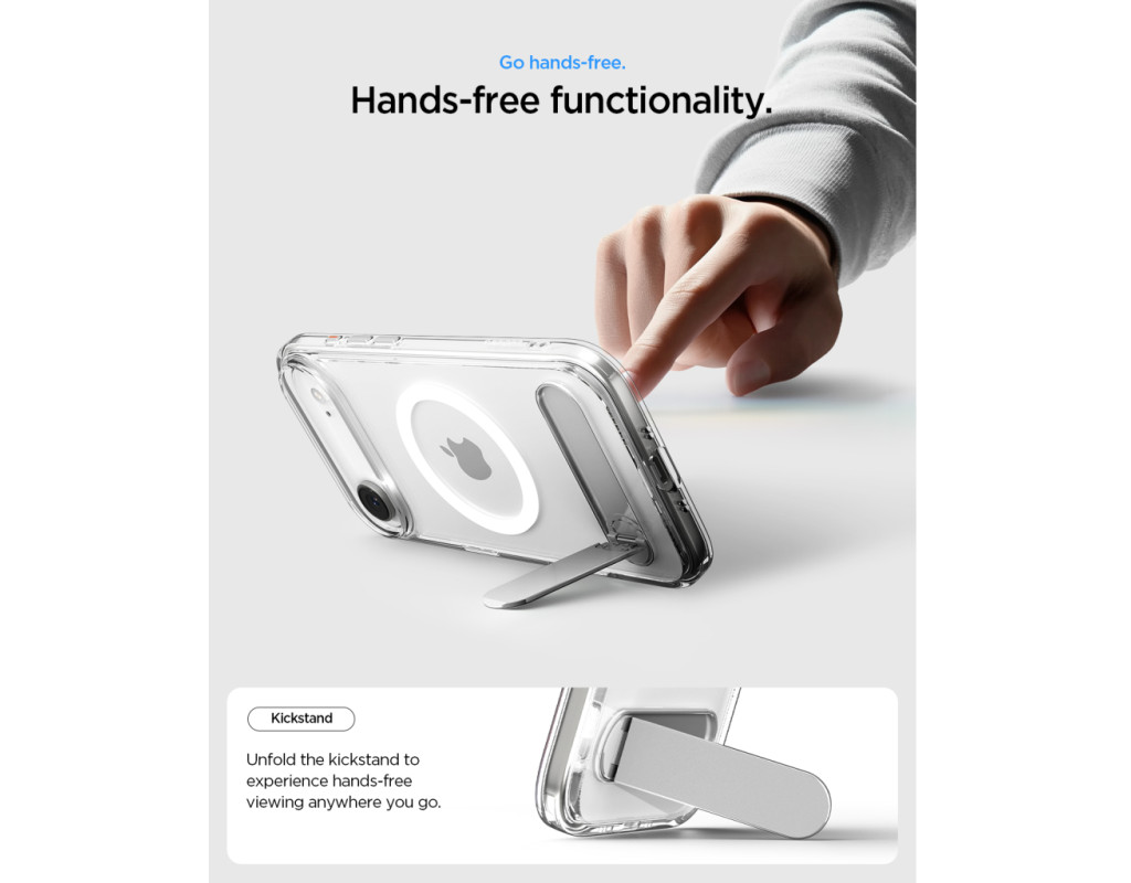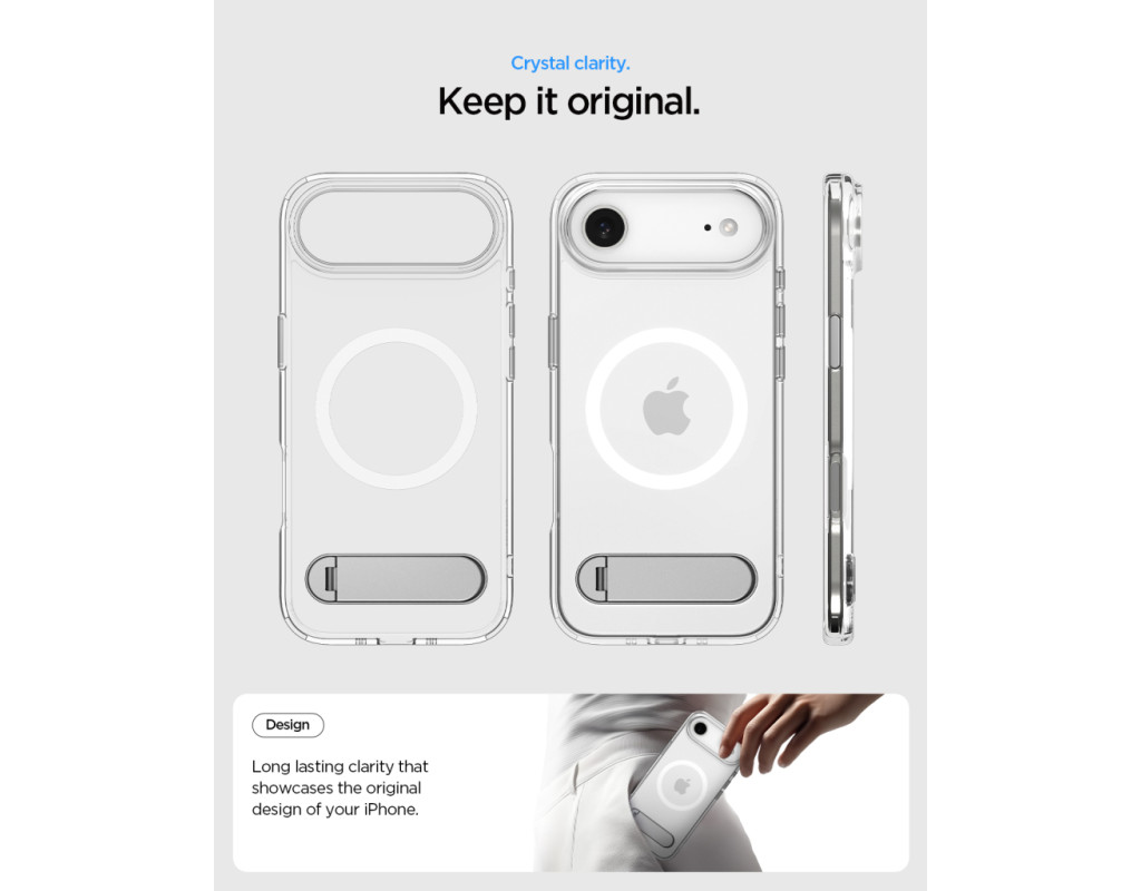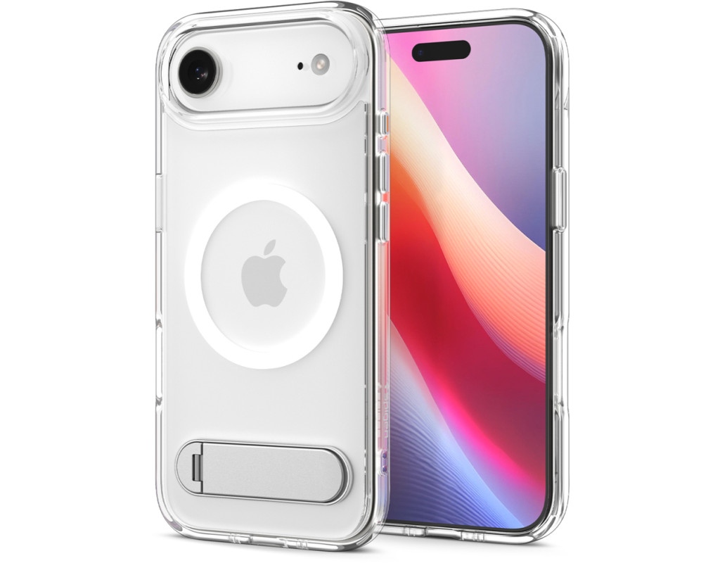 | Spigen Ultra Hybrid S MagFit Clear White для iPhone 17 Air — прозрачный защитный чехол с прочной PC-панелью, гибкими TPU-боковинами с технологией Air Cushion, полной совместимостью MagSafe и встроенной металлической подставкой для удобного просмотра видео. |