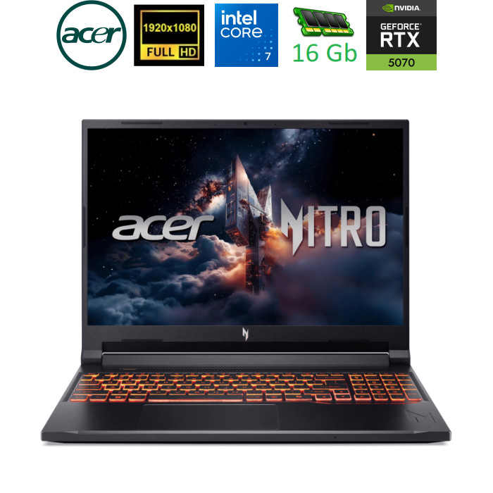 Подпитайте свою энергию с Acer Nitro V 16. Благодаря процессору Intel Core и графической карте NVIDIA GeForce RTX, этот 16-дюймовый игровой зверь обеспечивает высокие показатели FPS, производительности ШИ и лучшее охлаждение для полного доминирования.