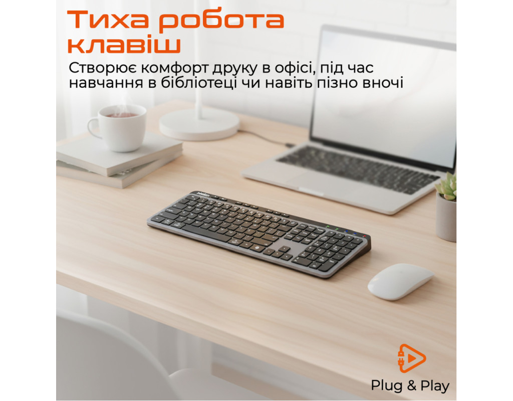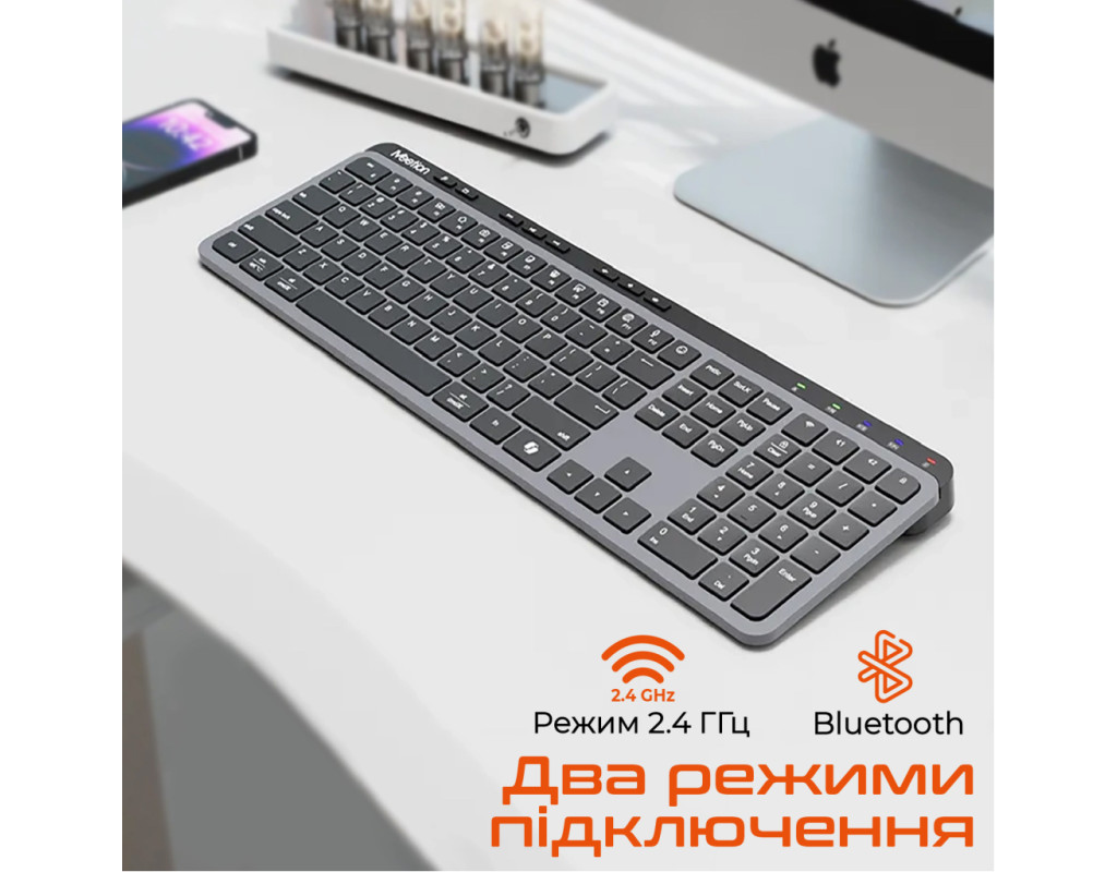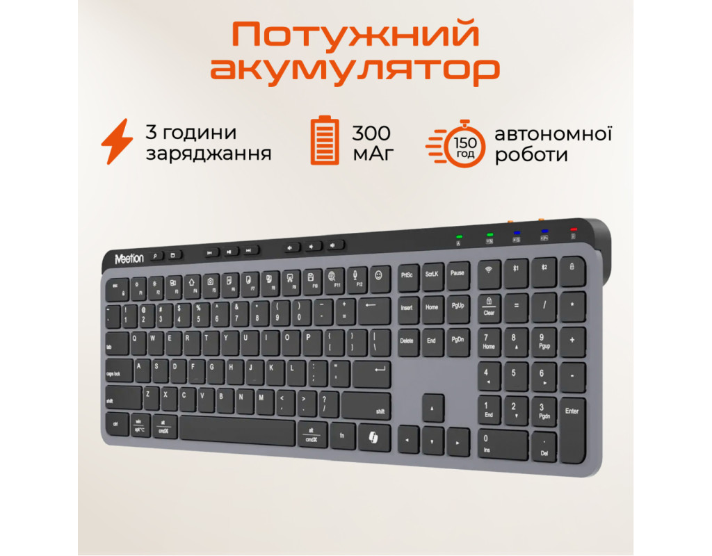 | Клавиатура Meetion WK330 Wireless/Bluetooth Black (MT-WK330-A-RUA) — идеальный выбор для тех, кто стремится к безупречному сочетанию функциональности и стиля в своей повседневной работе. Эта мультимедийная клавиатура разработана для использования с ПК и отличается мембранной конструкцией, обеспечивающей бесшумный ввод, становясь брендом на любом рабочем месте или даже дома. Основным преимуществом клавиатуры Meetion WK330 является ее беспроводная свобода благодаря поддержке USB адаптера 2.4 ГГц и Bluetooth. Это обеспечивает легкое переключение между устройствами без лишних усилий и позволяет работать на расстоянии до 10 метров. Вы также несомненно отметите легкость и изящный дизайн клавиатуры, который позволяет ей гармонично вписываться в любую атмосферу. Тонкий корпус толщиной всего 12 мм делает ее стильным элементом на вашем столе. Встроенный аккумулятор емкостью 300 мА*ч позволяет клавиатуре работать до 150 часов без подзарядки, даже без подсветки. Заряжается устройство быстро — всего за 2-3 часа, обеспечивая постоянную готовность к работе. Мультимедийные клавиши позволяют мгновенно изменять громкость, переключать треки и быстро открывать браузер, что повышает вашу эффективность без лишних усилий. Наличие Plug & Play функции означает, что клавиатура готова к использованию сразу после подключения без установки дополнительного программного обеспечения, что делает ее совместимой с iOS, Android, Windows и Mac OS. Благодаря своей полноразмерной раскладке с английскими и украинскими клавишами, Meetion WK330 станет незаменимым инструментом для профессионального и личного использования, обеспечивая комфорт и качество каждого нажатия. |