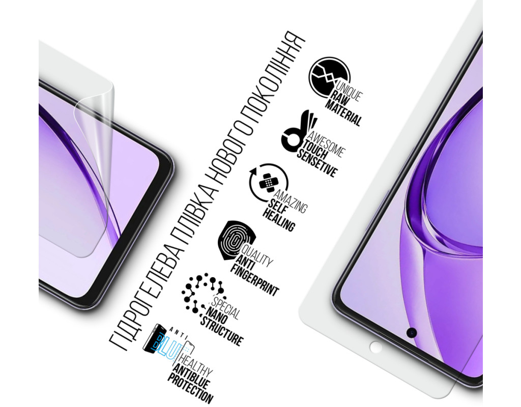 Назначение - для телефона, Вид покрытия - глянцевое, гидрогелевая, Совместимость с моделями - OPPO A3, Подходит для телефонов с диагональю - 6.67", Особенности - Anti-Blue Light, Количество в упаковке - 1 шт