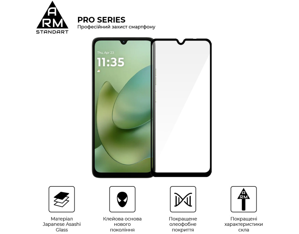 Захисне скло Armorstandart Pro Series - це абсолютно новий рівень захисту дисплея смартфона. У виробництві використовується матеріал Japenese Asahi Glass, який проходить загартування впродовж 4 годин. Це забезпечує ідеальну прозорість захисного покриття без спотворень зображення, а також потужний захист від тріщин і подряпин. Скло ніяк не впливає на чуйність тачскрина. У ньому міститься спеціальний матеріал, що перешкоджає появі відколів. Верхня частина скла містить покращене олеофобне й гідрофобне покриття. Під час використання скла це забезпечує природні тактильні відчуття - пальці легко ковзають по поверхні. Водночас зображення відбивається з автентичною яскравістю й чіткістю без спотворень. Задня частина по всій площі покрита клейовою основою нового покоління. Завдяки цьому досягається повний брак пухирців і можливість переклеювання скла в разі первісного нерівного встановлення. Захисне скло Armorstandart Pro Series має оптимальні габарити та товщину на 0,3 мм. Передбачено вирізи під усі датчики, камери та роз'єми. До комплекту входить усе потрібне для швидкого та комфортного встановлення. Особливості: