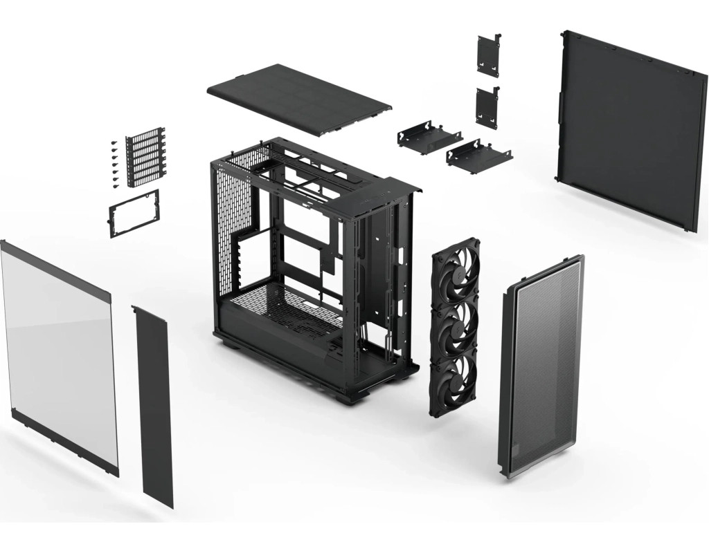 | Корпус для ПК Fractal Design Epoch XL Black TG Light tint (FD-C-EPO1X-02) является воплощением современного дизайна и инженерного совершенства, идеально подходит для создания мультимедийных и игровых систем. С первого взгляда этот *Miditower корпус* привлекает внимание своей стильностью, подчеркнутой черным цветом и слегка тонированным закаленным стеклом. Это решение для тех, кто ценит не только производительность, но и эстетику. Оптимизированный воздушный поток является одной из самых сильных сторон этого корпуса. Благодаря трем мощным вентиляторам Momentum 14, он гарантирует эффективную вентиляцию, которая поддерживает стабильную работу ваших компонентов. Лопасти из LCP и подшипники FDB обеспечивают не только отличную техническую поддержку, но и более тихую работу, что критически важно для создания комфортной среды при длительных игровых сессиях. Просторный интерьер корпуса способен вместить материнские платы Micro-ATX, Mini-ITX и ATX, обеспечивая высокую гибкость конфигураций. Место внутри позволяет устанавливать видеокарты длиной до 425 мм, что дает возможность использовать самые мощные современные решения. Дублируемые отсеки для SSD и HDD позволяют организовать эффективное хранение данных. Легкость доступа и удобство монтажа завершают философию этого корпуса. Беспосверливаемое крепление и возможность быстрого снятия панелей облегчают сборку и модернизацию системы, что будет оценено как новичками, так и опытными пользователями. Поддержка жидкостного охлаждения делает Fractal Design Epoch XL идеальным для экспериментов с мощными системами охлаждения. Вы можете установить радиаторы длиной до 360 мм на передней или верхней панели, обеспечивая максимальную эффективность при охлаждении высокопроизводительных элементов. Внешние разъемы включают 2 порта USB 3.0, USB Type-C и комбинированные аудиоразъемы для наушников и микрофона, что делает подключение периферийных устройств быстрым и удобным. Эти разъемы поддерживают высокую скорость передачи данных, что ускоряет обмен информацией между устройствами. Благодаря *пылевым фильтрам*, которые можно с легкостью снять и очистить, внутреннее пространство вашего ПК всегда останется свободным от пыли, что значительно продлевает срок службы компонентов. Fractal Design Epoch XL Black TG Light tint — это не просто корпус для ПК, это воплощение современной технической мысли, объединяющей в себе функциональность, стиль и инновационность. Вес корпуса 11.5 кг обеспечивает его устойчивость и прочность, давая уверенность в долговечности его службы. Интеграция изящного компьютерного дизайна с передовыми технологиями делает этот корпус идеальным выбором для тех, кто стремится вытеснить границы возможного в персональных компьютерных системах. |