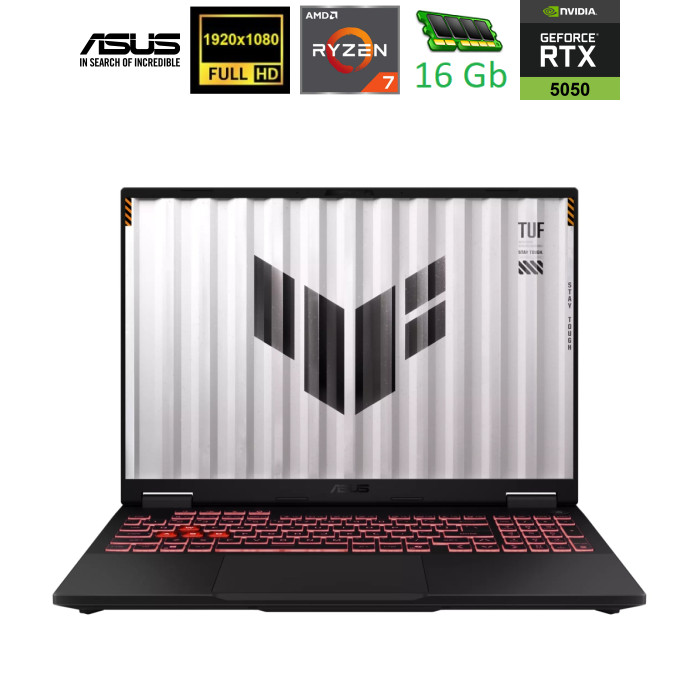 | Серьезные игровые характеристики Новый представитель семейства игровых ноутбуков, TUF Gaming A16, может похвастаться действительно поражающими характеристиками, открывая путь к лучшим играм. Новый уровень производительности Приготовьтесь к впечатляющей игровой производительности с видеокартой NVIDIA GeForce RTX для ноутбуков, которой может быть оборудован новый TUF Gaming A16 2025-го модельного года. Благодаря самым современным технологиям, таким как DLSS 4, Multi Frame Generation и трассировке лучей, A16 дарит невероятные впечатления от новейших и требовательных к графической производительности игр. Совершенно новый дизайн Дизайнерская идея, реализуемая в TUF Gaming A16, заключается в сочетании мощности и портативности. Имея массу чуть меньше 2.2 кг и толщину от 17.9 мм, ноутбук A16 легко поместится в большинство сумок, рюкзаков и даже портфелей, так что вы сможете взять его с собой куда угодно. Аккумулятор емкостью 90 Вт*ч поможет вам дольше играть или работать в автономном режиме, а благодаря возможности подзарядки через порт USB-C с мощностью 100 Вт пополнить заряд станет еще проще. Надежность военного класса Чтобы заслужить имя TUF Gaming, эти ноутбуки должны успешно пройти серию строгих испытаний по военному стандарту MIL-STD-810H. В частности, устройства подвергаются воздействию падений, вибрации, влаги и экстремальных температур. TUF Gaming A16 без проблем выдержит все тяготы не очень бережного повседневного использования. Эффективное охлаждение Мощные компоненты нуждаются в должном охлаждении, поэтому TUF Gaming A16 предлагает целый ряд технологий, обеспечивающих его максимальную производительность. От вентиляторов Arc Flow Fans 2-го поколения с дизайном, вдохновленным авиационными двигателями, к радиатору на всю ширину корпуса и встроенным противопылевым фильтрам – с ними A16 никогда не потеряет свою прохладу. Вентиляторы Arc Flow Fans 2-го поколения На кончиках каждой из 84 основных лопаток были добавлены небольшие изгибы, которые улучшают эффективность работы электромотора и уменьшают турбулентность воздуха. Вентиляторы теперь имеют конструкцию с двумя крыльчатками, меньшая из которых расположена внутри и имеет 42 лопатки, что позволяет всасывать больше воздуха с каждым оборотом, подобно реактивной турбине. Новые вентиляторы потребляют на 16% меньше энергии при одновременном увеличении воздушного потока на 11%, что позволяет высокопроизводительным компонентам внутри работать с максимальной отдачей. Мир в ваших руках Вооружитесь клавиатурой в стиле настольной клавиатуры, созданной специально для игр. Однозонную RGB-подсветку можно оформить в своем уникальном стиле. Технология Overstroke обеспечивает ускоренный срабатывание клавиш для более быстрой реакции и лучшего управления в играх. Согласно требованиям серии TUF, клавиатура также может похвастаться особой долговечностью – ее ресурс составляет более 20 миллионов нажатий. Тачпад имеет частоту опроса 240 Гц, что дает системе больше информации о том скроллинге, и уменьшает количество случайных ложных нажатий. Современные интерфейсы Ноутбук TUF Gaming A16 предлагает множество портов для подключения периферии. Отдельный порт HDMI 2.1 дополнен двумя портами USB Type-C с поддержкой интерфейса DisplayPort, а также возможности подзарядки и универсальной функциональности USB 3.2. С быстрым и надежным беспроводным модулем Wi-Fi 6E (802.11ax) вы сможете выйти в Интернет 