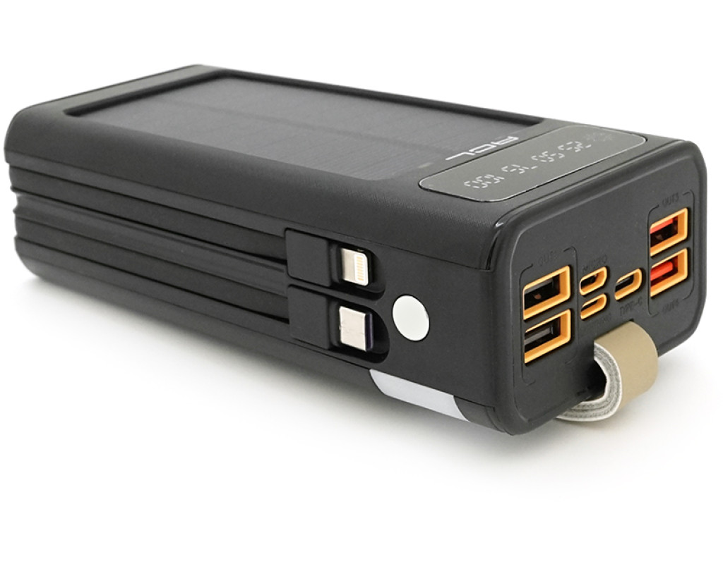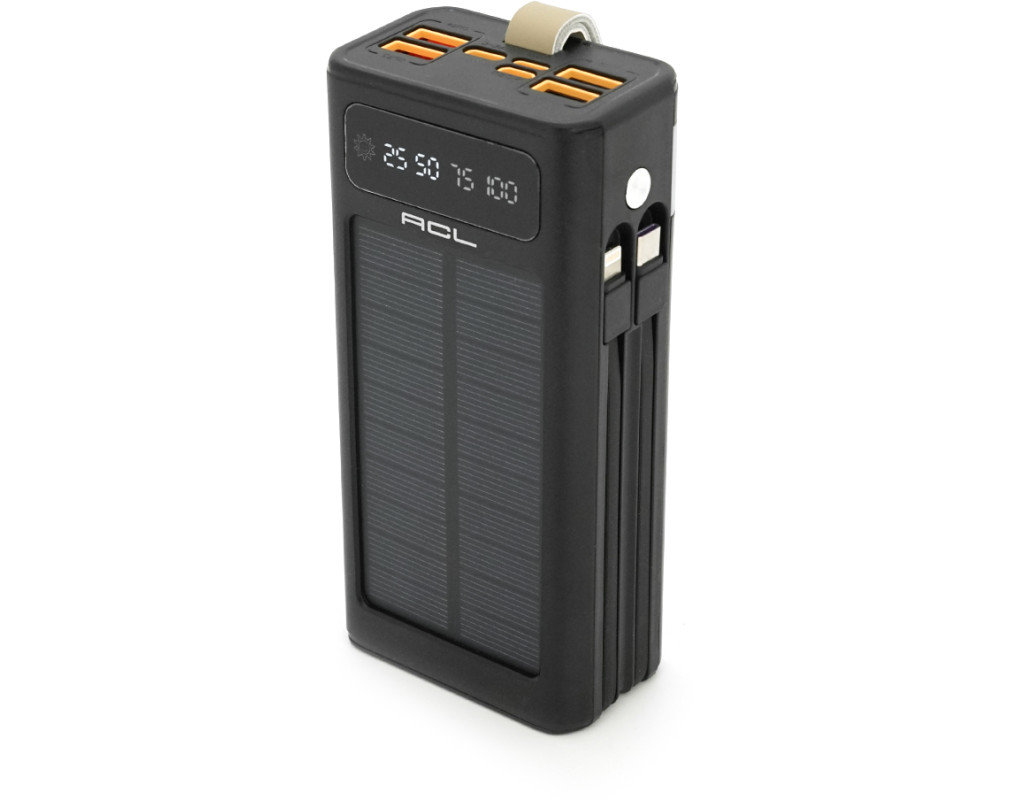 Powerbank ACL PW-90 30000mAh, SOLAR, Кабель TypeC + Lighting, 0,72kg, Black, Box