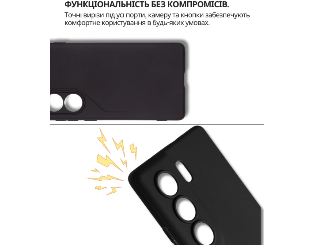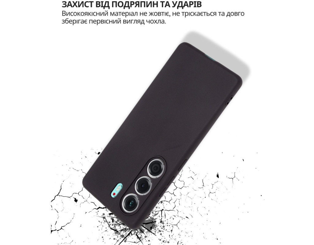 | "Тонкий і еластичний силіконовий чохол забезпечує надійний захист вашого смартфона від механічних пошкоджень, запобігаючи появі подряпин на корпусі. Завдяки високій якості матеріалу, чохол зберігає свою цілісність — він не рветься та не тріскається навіть при тривалому використанні. Чохол легко встановлюється, щільно прилягає до поверхні смартфона, не залишаючи повітряних зазорів, які могли б накопичувати пил, бруд або вологу. Легкий і непомітний, він не додає зайвого об'єму чи ваги вашому пристрою, забезпечуючи надійний захист від ударів, пошкоджень і вологи. Усі вирізи в чохлі точно відповідають роз'ємам і функціональним кнопкам смартфона, що гарантує зручне користування в будь-яких умовах. Силіконове покриття не ковзає, щільно облягає металевий корпус телефону та не перешкоджає доступу до роз'ємів для зарядки, USB-кабелю, гарнітури чи сканера відбитків пальців. Цей силіконовий чохол стане ідеальним вибором для тих, хто шукає стильний і практичний аксесуар для свого смартфона." |