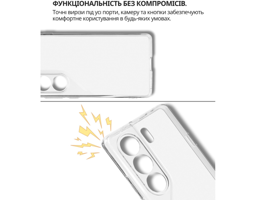 | "Тонкий і еластичний силіконовий чохол забезпечує надійний захист вашого смартфона від механічних пошкоджень, запобігаючи появі подряпин на корпусі. Завдяки високій якості матеріалу, чохол зберігає свою цілісність — він не рветься та не тріскається навіть при тривалому використанні. Чохол легко встановлюється, щільно прилягає до поверхні смартфона, не залишаючи повітряних зазорів, які могли б накопичувати пил, бруд або вологу. Легкий і непомітний, він не додає зайвого об'єму чи ваги вашому пристрою, забезпечуючи надійний захист від ударів, пошкоджень і вологи. Усі вирізи в чохлі точно відповідають роз'ємам і функціональним кнопкам смартфона, що гарантує зручне користування в будь-яких умовах. Силіконове покриття не ковзає, щільно облягає металевий корпус телефону та не перешкоджає доступу до роз'ємів для зарядки, USB-кабелю, гарнітури чи сканера відбитків пальців. Цей силіконовий чохол стане ідеальним вибором для тих, хто шукає стильний і практичний аксесуар для свого смартфона." |