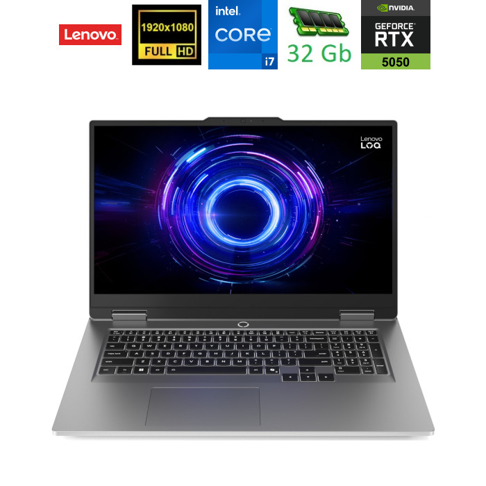 Ноутбук Lenovo LOQ 17IRX10 – это ваш билет в мир высокопроизводительных технологий, созданный для геймеров, контент-креаторов и тех, кто стремится к максимальному результату в работе или развлечениях. Благодаря мощному процессору, передовой графике и разумным AI-решениям, это устройство обеспечивает идеальное сочетание инноваций и экологической эффективности. Дисплей высокого качества, клавиатура, оптимизированная для комфортных ощущений и технология низкого голубого света делают Lenovo LOQ оптимальным выбором для современного человека, ценящего производительность. Энергия гейминга. Поток вдохновения. Скорость действия В сердце Lenovo LOQ 17IRX10 находится мощный процессор Intel Core i7-13700HX – идеальный выбор для многозадачности и требовательных приложений. Его архитектура включает 16 ядер (8 производительных P-core и 8 энергоэффективных E-core) и 24 потока, позволяя выполнять несколько сложных задач одновременно. Максимальная тактовая частота ядер составляет 5,0 ГГц для P-core и 3,7 ГГц для E-core, обеспечивая высокую скорость выполнения команд. Благодаря кэшу размером 30 МБ этот процессор способствует мгновенному доступу к данным и снижает задержки. Такой мощный процессор идеально подходит для геймеров, живущих в мире высоких FPS (кадров в секунду), или для контент-креаторов, которым нужна быстрая обработка видео, графики или 3D-моделирования. А встроенные AI-функции, интегрированные через чип LA1, делают игровой опыт максимально интуитивным и эффективным, адаптируясь к стилю игры. Портал в мир цвета, скорости и мощности 17.3-дюймовый дисплей Lenovo LOQ 17IRX10 – это ваш ключ к увлекательному игровому и мультимедийному опыту. Благодаря разрешению Full HD (1920x1080), матрице IPS с яркостью 300 нит и бликовому покрытию, ваша картинка всегда будет яркой и четкой, даже при ярком освещении. Частота обновления 165 Гц гарантирует плавный и динамичный геймплей без разрывов кадров. Поддержка технологий Advanced Optimus и NVIDIA G-SYNC обеспечивает идеальную синхронизацию между видеокартой и дисплеем для стабильного FPS во время упорных геймерских сражений. Дополнительно, сертификация TUV Low Blue Light с программными настройками минимизирует влияние вредного синего света, заботясь о комфорте ваших глаз в течение длительных сессий за дисплеем. Видеокарта NVIDIA GeForce RTX 5050 с 8 ГБ GDDR7 станет вашим главным союзником в создании контента и играх. С Boost Clock в 2662 МГц и TGP 115W она выдает высококачественную графику без задержек благодаря передовым AI-технологиям — это до 440 AI TOPS, которые обеспечивают быструю обработку сложных сцен. Один слот оперативной памяти DDR5-4800 SO-DIMM объемом 32 ГБ обеспечивает высокую скорость передачи данных. А 1 ТБ SSD – это пространство для всех ваших данных, программ и игр, гарантируя молниеносный запуск системы и сохранение больших файлов. Lenovo LOQ – безопасная зона в онлайн-мире Ноутбук оснащен современным модулем Wi-Fi 6 (802.11ax 2x2) и поддерживает Bluetooth 5.2, обеспечивая стабильную, быструю и надежную связь, незаменимую для онлайн-игр или удаленной работы. Помимо высокоскоростного подключения к Интернету, Lenovo LOQ гарантирует безопасность данных благодаря интегрированным функциям защиты, таким как E-shutter для камеры – это просто и эффективно, чтобы избежать нежелательного наблюдения. Батарея ноутбука обеспечивает длительное время автономной работы, что особенно важно для всех работающих дистанционно или любящих и