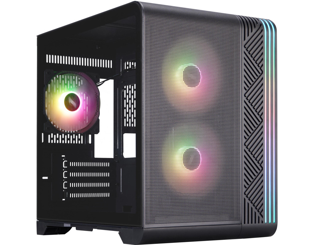 | 1stPlayer VT5 – это функциональный двухкамерный корпус формата Midi-Tower, разработанный для производительных игровых систем. Его главная особенность – уникальная фронтальная панель из металлической сетки с оригинальным узором, обеспечивающая беспрепятственный забор холодного воздуха и эффектный вид ARGB-подсветки.