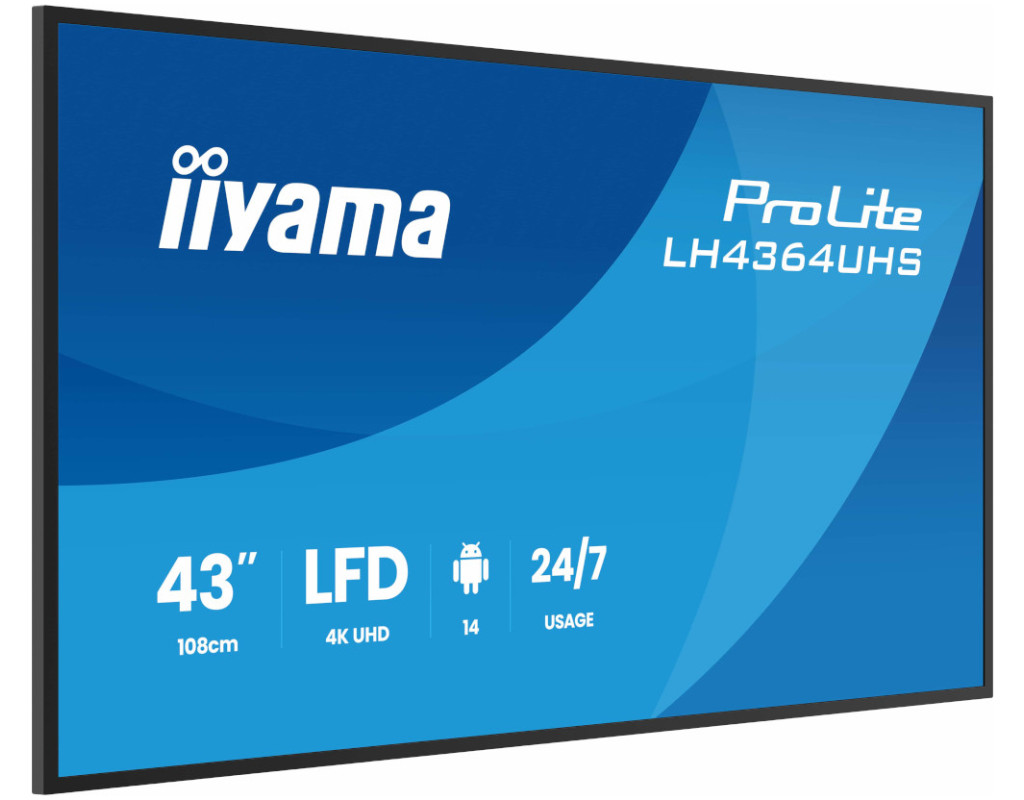 43" 4K UHD – мощный профессиональный дисплей для цифровых вывесок с расширенными возможностями управления и подключения Модель ProLite LH4364UHS-B1AG – это 43-дюймовый 4K UHD дисплей нового поколения, созданный для максимально эффективной визуальной коммуникации в вашем бизнесе. Оснащенный операционной системой Android 14, платформами iiSignage² (CMS), iiControl (DMS) и iiShare (беспроводная презентация), он обеспечивает простое и интуитивное управление контентом. Поддержка Wi-Fi позволяет обновлять контент дистанционно, а режим 24/7 гарантирует надежную работу без перерывов. Идеальное решение для розничной торговли, офисных пространств, гостиниц или заведений питания – этот дисплей сочетает яркость, гибкость и привлекательный дизайн для максимальной вовлеченности аудитории. Операционная система Android iiSignage² Signal FailOver Гибкая ориентация |