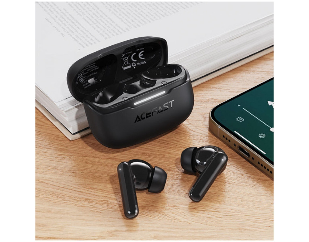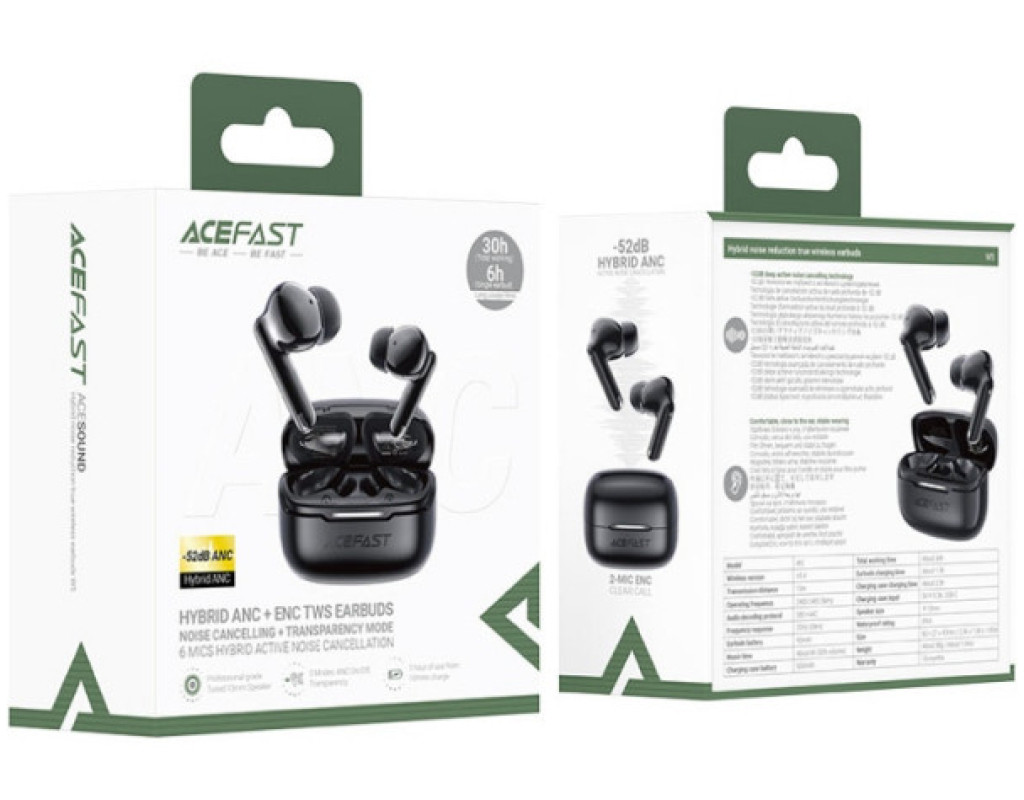 ACEFAST W5 – это беспроводные TWS-наушники с гибридным активным шумоподавлением (Hybrid ANC) и технологией ENC для звонков. Модель оснащена шестью микрофонами, обеспечивающими глубину шумоподавления до -52 дБ, а также тремя режимами работы: активное шумоподавление, прозрачный режим и выключенное шумоподавление. Это позволяет пользователю легко адаптироваться к разным ситуациям – от полного изолирования от внешних звуков до восприятия окружающих. Качество звучания обеспечивают 13-миллиметровые драйверы с композитной диафрагмой и профессиональной настройкой акустики. Наушники издают мощный бас, проницательный и чистый звук по всему диапазону частот от 20 Гц до 20 кГц. Поддержка кодеков SBC и AAC, а также чип Bluetooth 5.4 гарантируют стабильное соединение, минимальные потери качества и низкую задержку в игровом режиме, идеально подходящую для геймеров и просмотра видео. Автономность является одной из сильных сторон модели: каждый наушник имеет аккумулятор на 40 мАч, что хватает на 6 часов прослушивания музыки на средней громкости. Кейс с батареей 500 мАч заряжает наушники до четырех раз, снабжая в общей сложности до 30 часов работы. Быстрая зарядка позволяет получить час использования всего за 10 минут в кейсе, а полная зарядка наушников длится около 1,5 часов. Дизайн ACEFAST W5 компактен и практичен: вес комплекта всего 38 граммов, размеры кейса – 60×27×47 мм. Наушники имеют защиту IPX4 от брызг и дождя, что делает их удобными для спорта и активного отдыха на улице. |