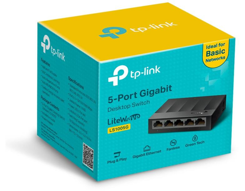 | 5 гигабитных портов RJ45 с автосогласованием и Auto-MDI/MDIX