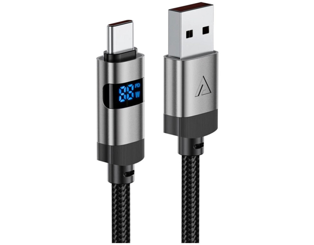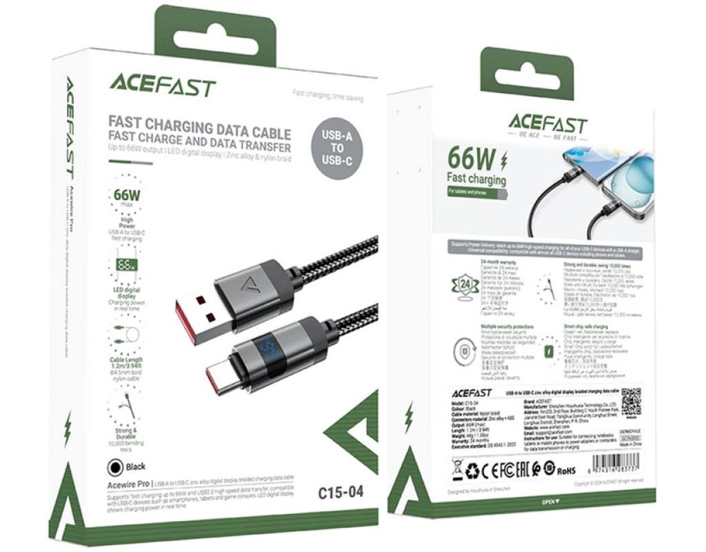 Дата кабель USB 2.0 AM to USB-C 1.2m digital display braided C15-04 black Acefast (6974316283737)