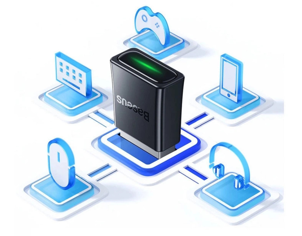 | Baseus BA07 - это маленькое и функциональное устройство, позволяющее подключить к вашему компьютеру или ноутбуку Bluetooth подключение. Адаптер может работать одновременно с 5 устройствами, начиная от мышки и наушников и заканчивая клавиатурой и телефоном. Baseus BA07 поддерживает систему Plug and Play, а значит не нужно устанавливать дополнительные драйвера для использования. драйверов не требуется. Просто подсоедините адаптер к прибору и наслаждайтесь работой. Основные характеристики: