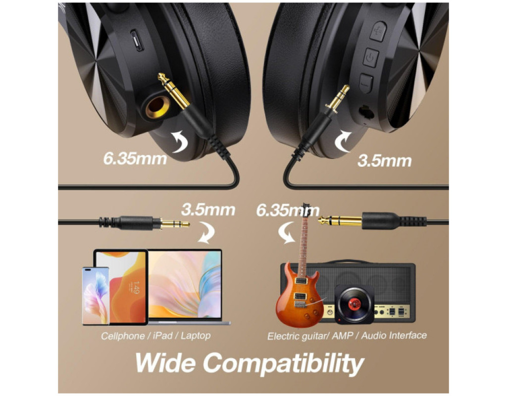 | OneOdio Fusion A70 – ваше идеальное решение для высококачественного звукового опыта. Это уникальная модель, которая сочетает в себе элегантный дизайн и первоклассные технические характеристики, обеспечивая вас лучшим звучанием как в домашних условиях, так и на ходу. С прошитыми черными амбушюрами из экокожи, эти полноразмерные наушники обеспечивают не только кристально чистый звук, но и высокий уровень комфорта для длительного использования. Мягкие амбушюры с эффектом памяти гарантируют комфортную посадку на голове, а закрытая акустическая конструкция обеспечивает отличную шумоизоляцию вокруг, даря вам концентрацию на каждой музыкальной ноте. Гарнитура оснащена мощными 40-миллиметровыми двуполосными динамиками, которые воспроизводят глубокие басы, четкие средние и самые чистые высокие частоты. Благодаря японским компонентам – звуковой катушке и диафрагме драйвера – вы сможете наслаждаться звукопередачей профессионального качества. Особенностью наушников является комбинированное подключение. Вы можете использовать Bluetooth 5.2 для беспроводного соединения или воспользоваться 3.5 мм и 6.35 мм jack-входами для подключения к любым аналоговым источникам звука. Наличие двух аудиовходов позволяет одновременно подключить гарнитуру к нескольким устройствам, что расширяет функциональные возможности OneOdio Fusion A70. Встроенный микрофон, размещенный на проводе, обеспечивает четкую и уверенную передачу голоса во время телефонных разговоров или видеоконференций. Позолоченные штекеры обеспечивают стабильную аудиопередачу без потерь качества, а система блокировки предотвращает случайное выдергивание кабеля. Одной из самых ценных особенностей этой гарнитуры является встроенный аккумулятор емкостью 650 мАч, который обеспечивает до 72 часов непрерывного воспроизведения на одном заряде. Вы можете слушать любимую музыку или подкасты без необходимости частой зарядки, что идеально подходит для поездок и путешествий. Технология OneOdio Shareport позволяет испытать уникальный опыт последовательного подключения двух пар наушников. Обменивайтесь музыкой со своими друзьями и получайте еще больше удовольствия от совместного прослушивания фантастических треков, позволяя вашей музыке распространяться еще дальше. Для максимального удобства использования, эта модель оснащена оголовьем, которое легко регулируется под любой размер головы, что позволяет адаптировать гарнитуру под свои индивидуальные потребности. Компактная складная конструкция делает эти наушники идеальными для хранения и транспортировки, позволяя вам всегда быть уверенным в их сохранности. Выбирая OneOdio Fusion A70, вы получаете гармоничное сочетание студийного качества звука и беспроводной мобильности, что делает их неотъемлемой частью вашей повседневной жизни. Откройте для себя новый уровень звучания, где каждая деталь имеет значение, а функциональность и дизайн создают совершенный тандем. |
