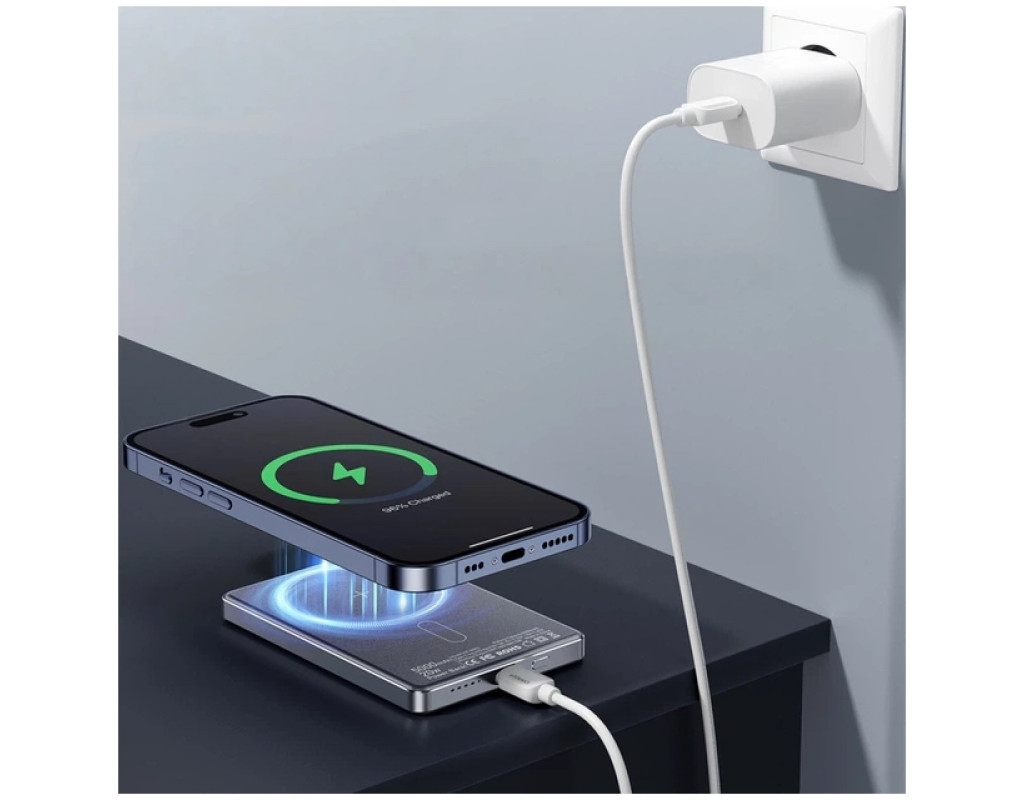Повербанк ESSAGER Magnetic 20W 5000mAh — сверхкомпактная зарядка с MagSafe для тех, кто всегда в движении ESSAGER Magnetic 20W — это стильный, легкий и невероятно удобный повербанк, созданный для максимальной мобильности Благодаря поддержке MagSafe, беспроводной зарядке энергией в самый подходящий момент, не занимая лишнего места. MagSafe-совместимость — зарядка без проводов Повербанк оснащен магнитным модулем, который идеально фиксируется к iPhone с поддержкой MagSafe (начиная с iPhone 12 ). Просто прикрепить – и беспроводная зарядка начинается мгновенно. Такой способ позволяет полностью отказаться от кабелей, обеспечивая комфорт даже в пути или на ходу. Емкость 5000 мАч - экстренная энергия всегда под рукой Этот "малыш" идеально подходит для быстрой подзарядки смартфона в течение дня. Емкости 5000 мАч достаточно, чтобы добавить смартфону 50–70% заряда — этого хватает для звонков, навигации или просмотра контента в самые важные моменты. Быстрая зарядка 20W Power Delivery (PD) Благодаря поддержке PD до 20W, повербанк обеспечивает сверхбыструю зарядку совместимых устройств, включая iPhone , iPad и другие современные гаджеты. Всего несколько минут – и смартфон снова готов к работе. Поддержка Quick Charge – универсальность в использовании Помимо PD, модель поддерживает Quick Charge, позволяющую быстро заряжать устройства с Android и другие совместимые гаджеты. Это расширяет функциональность устройства, делая его идеальным выбором не только владельцам iPhone. Li-Pol батарея — надежность и компактность Литий-полимерная технология обеспечивает высокую безопасность, износостойкость и позволяет уменьшить толщину и вес устройства. В результате ESSAGER Magnetic 20W остается лёгким и при этом достаточно мощным. Настоящая портативность — в кармане или ладони Модель EDY5K-YJ0A-Z отличается компактным форм-фактором. Повербанк практически не чувствуется в кармане и не тяготит в сумке. Это решение для ищущих максимально мобильный вариант энергоподпитки. Кому подходит ESSAGER Magnetic 20W: - Владельцам iPhone с MagSafe: оптимальный аксессуар для беспроводной зарядки без суеты