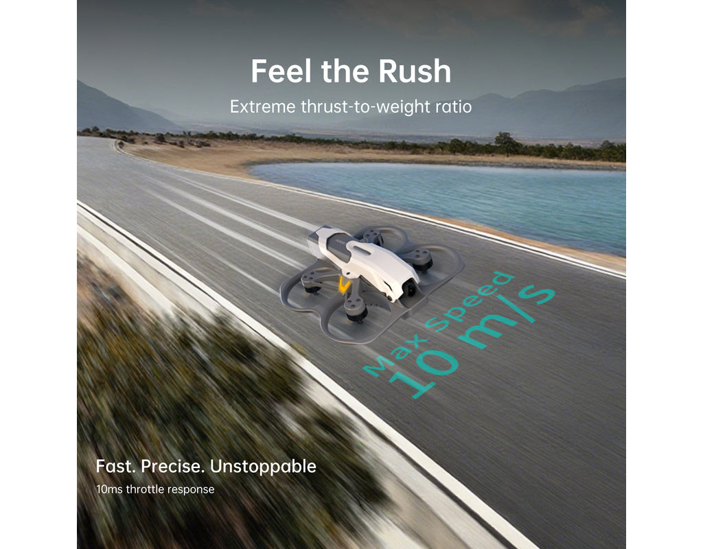 PROTOS — это современный высокотехнологичный дрон, созданный для пилотов, которым необходимы максимальная управляемость, стабильность и качественная видеопередача. Компактный, лёгкий и невероятно манёвренный, он станет идеальным выбором как для профессиональных FPV-полётов, так и для опытных энтузиастов, стремящихся получить высокую производительность в минимальных габаритах. Дрон оснащён полётным контроллером Caddx Protos Aio 1.0, обеспечивающим точность, чувствительность и уверенную работу в сложных условиях. Надёжный видеопередатчик Ascent Lite гарантирует стабильную трансляцию с минимальной задержкой, что является ключевым фактором для FPV-полётов. Средняя задержка составляет всего 35 мс, что позволяет максимально точно ощущать дрон в пространстве, а дальность передачи до 3 км открывает широкие возможности для полётов на больших расстояниях. Компактная конструкция с диагональю между моторами 78 мм в сочетании с мощными двигателями 1102 14000KV обеспечивает быструю реакцию, отличную тягу и высокую манёвренность. Пропеллеры HQProp U40×3GR-PC созданы для эффективного воздушного потока и стабильности даже на высоких оборотах. Благодаря оптимизированной конструкции время полёта достигает впечатляющих 8,5 минут, что является очень высоким показателем для FPV-дрона такого класса. Видеосистема дрона построена на сенсоре 1/2,8" с широким углом обзора 147°, что позволяет охватывать максимальное пространство в кадре. Передача осуществляется в форматах 1080P 60FPS или 720P 60FPS, обеспечивая чёткость и плавность изображения. Видеопередатчик Ascent Lite работает с мощностью от 25 до 100 мВт, что позволяет адаптироваться к различным условиям и требованиям площадки. В комплектных FPV-очках поддерживаются частоты 5,725–5,850 ГГц, а максимальная кодовая скорость составляет 50 Мбит/с, что гарантирует высокое качество передачи без артефактов. Минимальная средняя задержка — всего 32 мс, а антенна обеспечивает среднее усиление сигнала 4,9 дБи. Благодаря поддержке ELRS 2.4 ГГц дрон имеет чрезвычайно стабильный и надёжный RC-сигнал, что важно для пилотов, выполняющих сложные манёвры или летающих на большие дистанции. Вес модели составляет всего 104,4 г, а габариты — 110×102,8×41 мм, что делает её очень портативной и удобной для транспортировки. Подключение очков и аксессуаров также продумано: доступны интерфейсы 4-pin 3,5 мм, DC 5,5×2,1 мм и слот для карт MicroSD, на которые можно записывать FPV-видео в высоком качестве. PROTOS — это дрон, сочетающий компактность, мощность и современные технологии передачи сигнала, обеспечивая высокий уровень контроля, стабильности и детализации изображения. Отличный выбор для FPV-энтузиастов, которые ценят точность, качество и уверенность в каждом полёте. Полётный контроллер