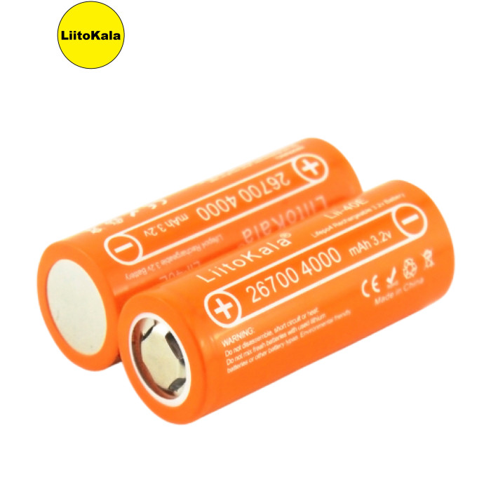 | 'Brand Name: LiiitoKala Model: Lii-40E Type: Lifepo4 26700 Nominal Capacity: 4000mah Nominal Voltage: 3.2V Weight: 90g±1g Rechargeable Battery: Yes Rechargeable Times: Up to 1000 times internal resistance: ≤20mΩ Limited Charge Voltage: 4.2v Working Voltage: 2.75-4.2V Size: 71mm x 26.5mm (Diameter) ' |