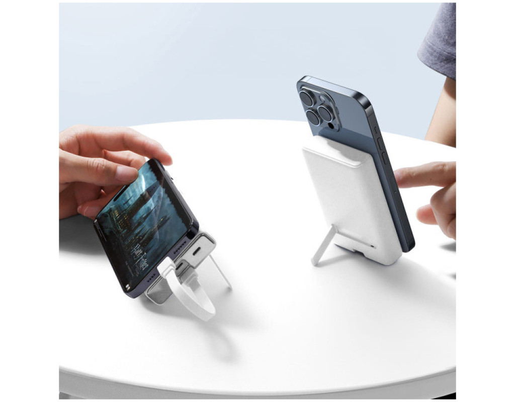 Мощность магнитного зарядного устройства Мощные магниты N52H обеспечивают полную безопасность вашего устройства во время подзарядки. Магниты устраняют риск падения телефона, обеспечивая устойчивость даже в самых динамичных условиях. Повербанк Joyroom JR-PBM01 не только безопасен, но и удобен в использовании. Заряжание под рукой Магнитный повербанк Joyroom JR-PBM01 позволяет заряжать устройства iOS и Android. Зарядный кабель имеет разъемы USB-C и Lightning, которые можно взаимозаменяемо подключать к павербанку. Это большое преимущество, поскольку позволяет адаптировать powerbank к разным устройствам без необходимости носить с собой дополнительные аксессуары. Комфорт просмотра Сложная подставка позволяет смотреть фильмы или читать электронные книги во время зарядки. Магнитный павербанк Joyroom JR-PBM01 в считанные секунды превращается в практическую подставку, позволяя вам использовать свое устройство, не прерывая его зарядку. Обзор данных о зарядке Цифровой дисплей на магнитном павербанке Joyroom JR-PBM01 – это удобно, что позволяет быстро проверить уровень заряда и статус беспроводной зарядки. Эта функция устраняет предположение о том, что устройство уже заряжено, и позволяет лучше планировать потребление электроэнергии. Сверхбыстрая зарядка С максимальной выходной мощностью PD 20 Вт магнитный павербанк Joyroom JR-PBM01 обеспечивает зарядку в три раза быстрее стандартных павербанков. Вы постоянно в движении и вам нужно быстро восстановить энергию своих устройств? Это повербанк для вас. |