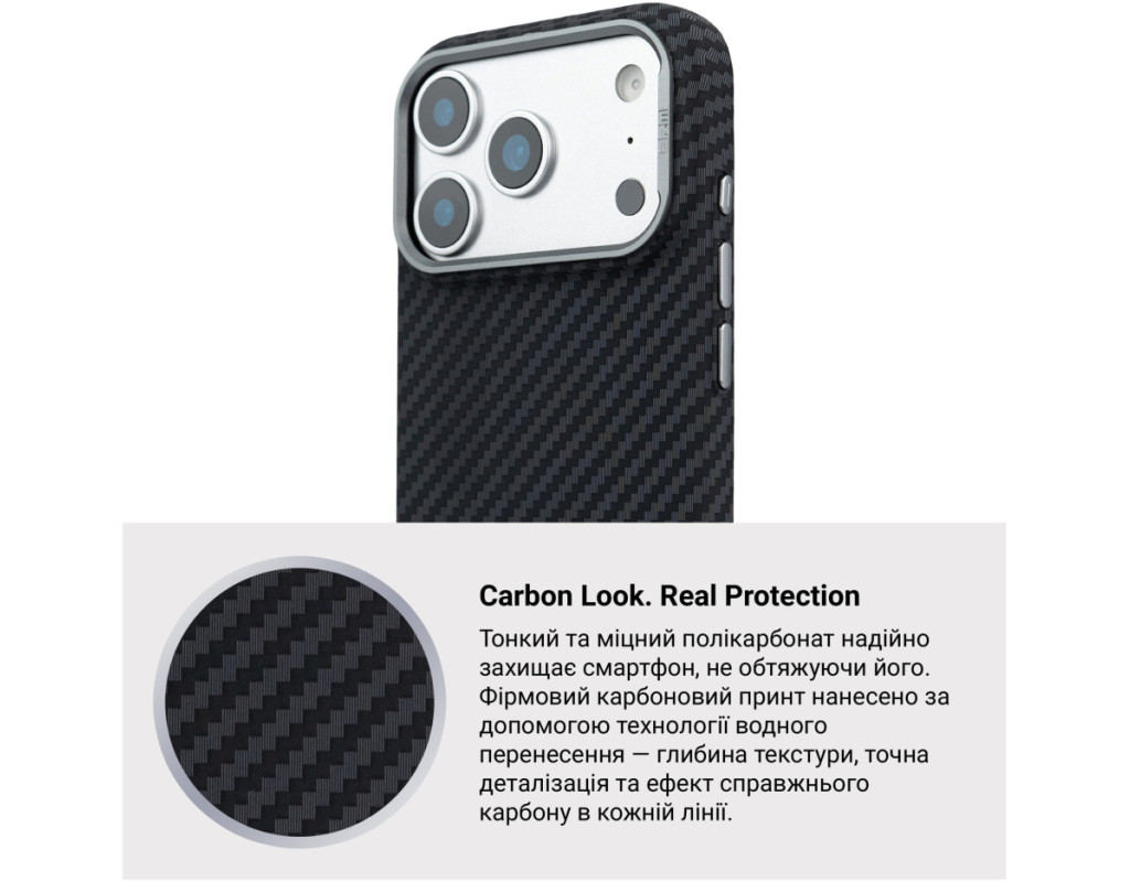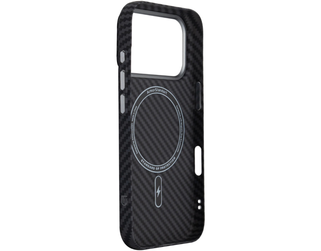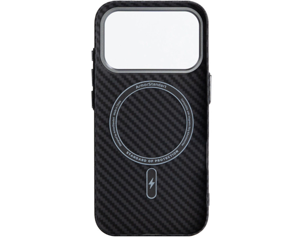 Чохол ArmorStandart LikeCarbon2 MagCase для Apple поєднує у собі міцність, захист і сучасне оформлення. Корпус виготовлений із якісного матового полікарбонату з покриттям, що імітує карбонове волокно. Міцні алюмінієві кнопки та рамка навколо камери підвищують загальну зносостійкість аксесуара. Чохол забезпечує надійний захист смартфона від ударів, падінь, подряпин та інших механічних пошкоджень. Підняті краї навколо блоку камери захищають об’єктиви від контакту з поверхнями, що важливо для збереження якості фото- та відеозйомки. Вбудовані магніти стандарту N52 дозволяють використовувати аксесуар з MagSafe та іншими сумісними пристроями та тримачами. ArmorStandart LikeCarbon2 MagCase — це практичне рішення для повсякденного захисту вашого смартфона. Особливості: