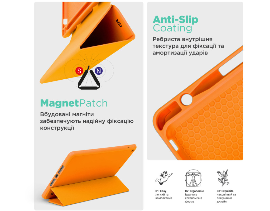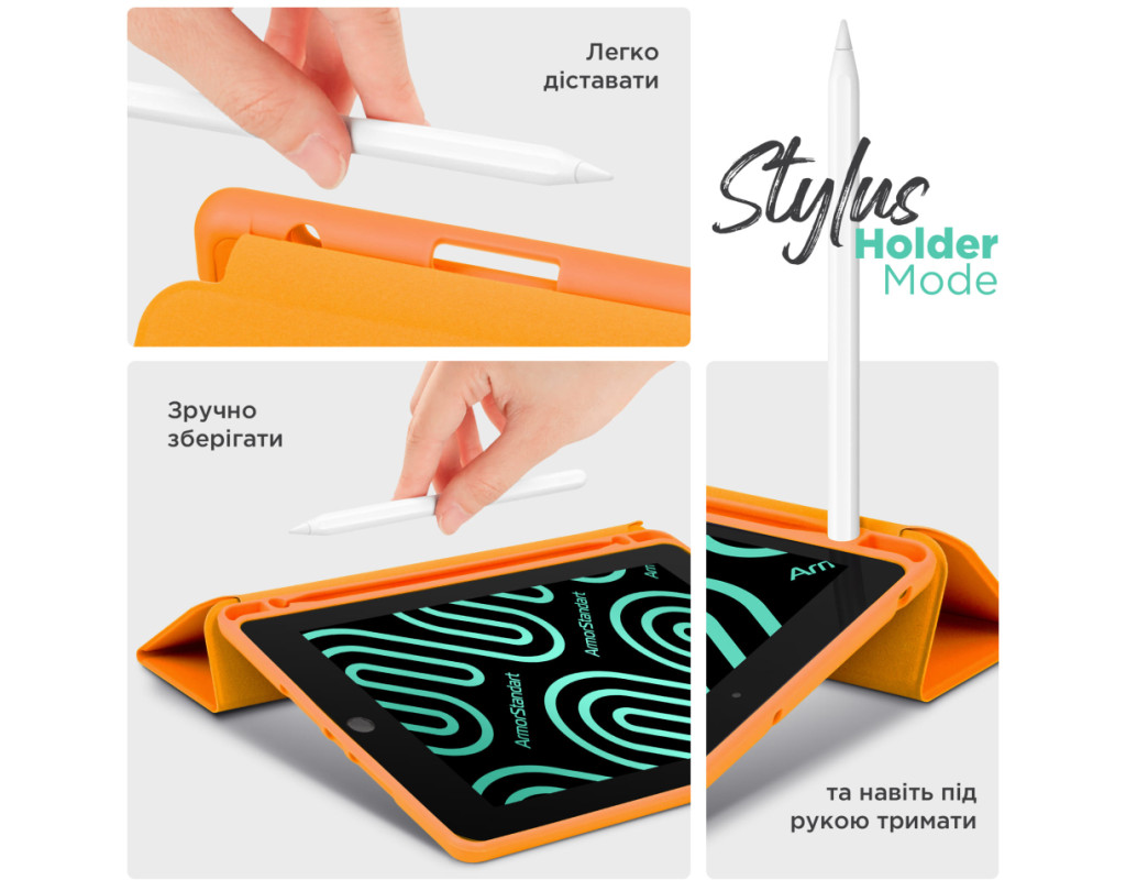 Чохол ArmorStandart Smart Fold Pen – є функціональним та надійним рішенням для вашого планшета. Цей чохол вирізняється не лише своєю практичністю, але й багатофункціональністю. Виготовлений з високоякісного матеріалу, чохол з м'якого поліуретану (TPU) забезпечує надійний захист вашого планшета від подряпин і ударів, а кришка із штучної шкіри (PU) додає довговічності. Інтегрований слот для зберігання стилуса робить цей чохол ідеальним вибором для тих, хто цінує зручність і порядок. ArmorStandart Smart Fold Pen пропонує вам два зручних кути огляду. Використовуйте його як підставку для комунікації в FaceTime або для перегляду улюблених фільмів в режимі розслаблення. Функція Wake/Sleep працює таким чином: коли кришка чохла відкрита, планшет автоматично виходить з режиму сну, а коли кришка закривається, планшет "засинає". Це додає до чохла додаткової функціональності та зберігає заряд батареї. З ArmorStandart Smart Fold Pen ваш планшет не лише захищений, але і стає зручним інструментом для різноманітних щоденних задач. Оберіть надійність та практичність - оберіть ArmorStandart Smart Fold Pen для вашого планшета сьогодні. Особливості: