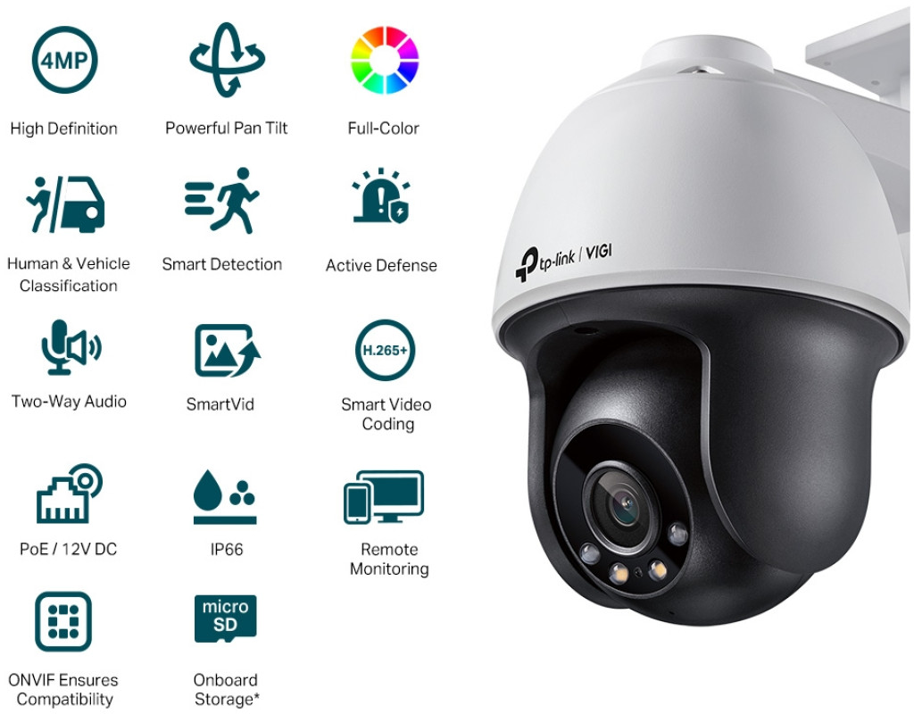 Роботизированная IP-видеокамера TP-Link VIGI C540 – это современное решение для эффективного видеонаблюдения с разрешением 4 Мп, что обеспечивает четкое изображение даже в деталях. Оснащенная 1/3” CMOS-матрицей с прогрессивным сканированием и фиксированным объективом с фокусным расстоянием 4 мм, камера обеспечивает широкий угол обзора: 79° по горизонтали и 43° по вертикали. Для качественного видеонаблюдения в темное время суток предусмотрена инфракрасная подсветка с максимальной дальностью до 30 м и длиной волны 850 нм, а также видимый свет. Устройство оснащено встроенным микрофоном и динамиком, позволяющим вести не только видео-, но и аудиомониторинг. Среди смартфункций - детекция человека, распознавание транспортного средства, обнаружение движения, пересечение линии и контроль входа/выхода из области. Камера подключается по проводу и идеально подходит для разумного наблюдения как в частных, так и коммерческих помещениях. Особенности: