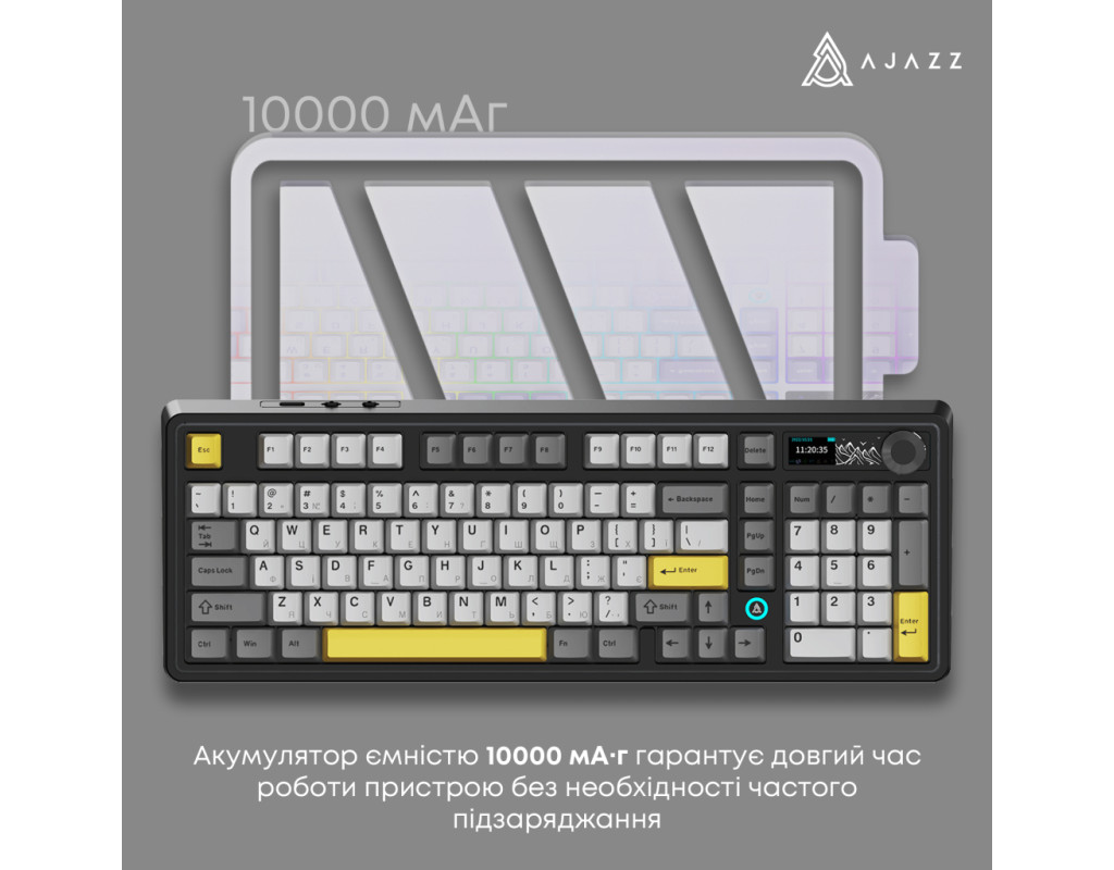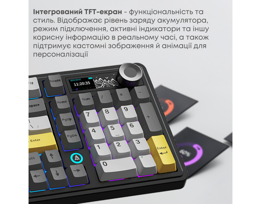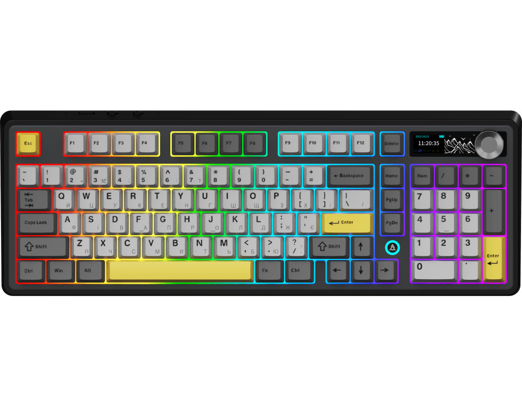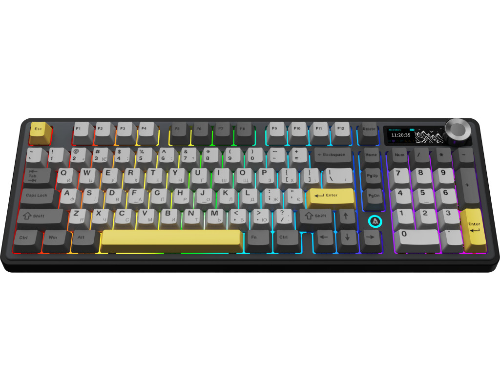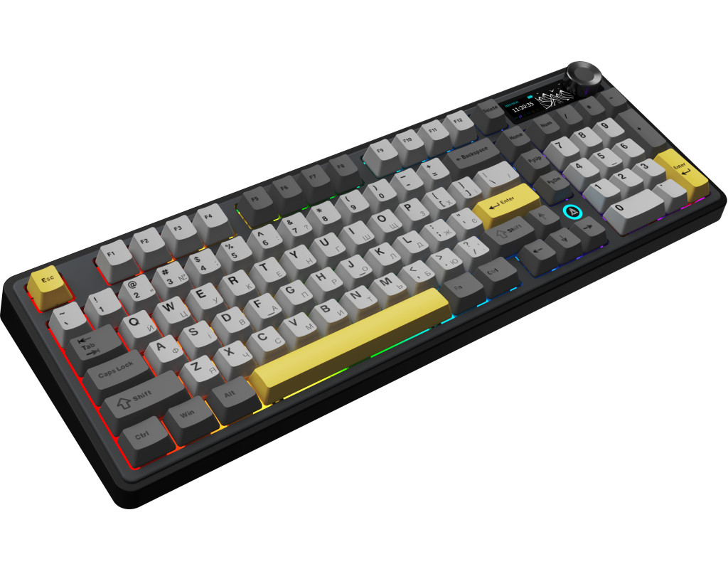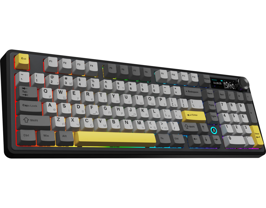 | Клавиатура Ajazz AK980 V2 Gift Switch V2 Wireless/Bluetooth/USB UA Black/Grey/Yellow (AK980-V2-G-BGY) — это современное решение для геймеров, программистов и пользователей, которые ценят качество и многофункциональность. Пленяя своей эстетикой и производительностью, эта клавиатура сочетает в себе новейшие технологии и стильный дизайн. Благодаря механическим переключателям Gift Switch V2, каждый нажатие клавиши ощущается плавно и стабильно, что делает её идеальной для продолжительной работы или динамичных игр. Горячий переключатель (Hot-swap) позволяет быстро и без лишних усилий менять переключатели, позволяя пользователям адаптировать клавиатуру под свои потребности. PBT кейкапы обеспечивают высокую износостойкость, длительное сохранение текстуры и комфортные тактильные ощущения. Яркая RGB-подсветка дает возможность персонализировать вид клавиатуры с использованием разнообразных световых эффектов. Это обеспечивает удобное использование даже в темноте, делая работу с клавиатурой комфортной и стильным дополнением к любому рабочему пространству. Ajazz AK980 V2 поддерживает три режима подключения: проводное, через 2.4 ГГц USB адаптер и Bluetooth, что позволяет легко переключаться между различными устройствами. Такая гибкость открывает новые горизонты в использовании клавиатуры с различными операционными системами, такими как Windows, Chrome OS, Mac OS, Android. Интуитивная настройка и удобство обеспечиваются встроенной батареей емкостью 10000 мА*ч, что гарантирует длительный период автономной работы без необходимости частых подзарядок. Кроме этого, клавиатура имеет 1.14-дюймовый цветной экран и многофункциональный энкодер, что делает управление настройками и мультимедийными функциями еще более удобным. Раскладка клавиатуры включает как английский, так и украинский языки, что отвечает потребностям различных пользователей. Ajazz AK980 V2 — это выбор тех, кто стремится получить максимум от компьютерных аксессуаров. Она обеспечивает универсальность подключения, современный функционал и комфортный механический набор, сочетая все это с потрясающим дизайном Black/Grey/Yellow. Это не просто клавиатура, это ключ к вашей продуктивности и творчеству. |