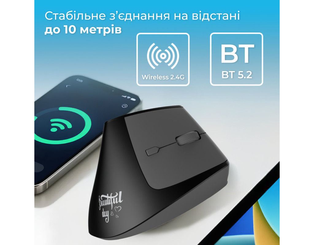 Мышка Ajazz i300 Wireless/Bluetooth/USB Black (i300-B)
