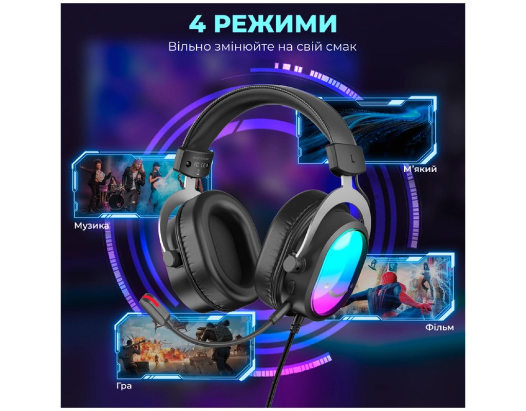 | Fifine Ampligame H16 создана для полного погружения в мир игр и комфортного общения. Эта гарнитура сочетает в себе передовые аудиотехнологии и продуманную эргономику, чтобы удовлетворить потребности даже самых требовательных игроков. Качество звука является нашим приоритетным преимуществом. Гарнитура оснащена мощными 50-мм аудиодрайверами, обеспечивающими кристально чистое, детализированное и объемное звучание. Вы сможете исследовать новые горизонты гейминга, чувствительные к каждому звуковому нюансу – от более тихого шелеста до мощных взрывов. Для максимального погружения в разные типы контента гарнитура предлагает 4 режима эквалайзера (EQ Modes), которые можно свободно изменять по вашему усмотрению: