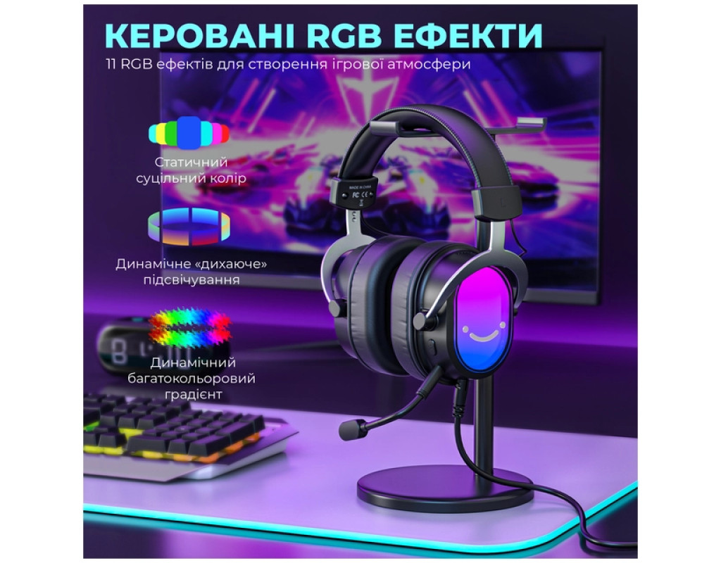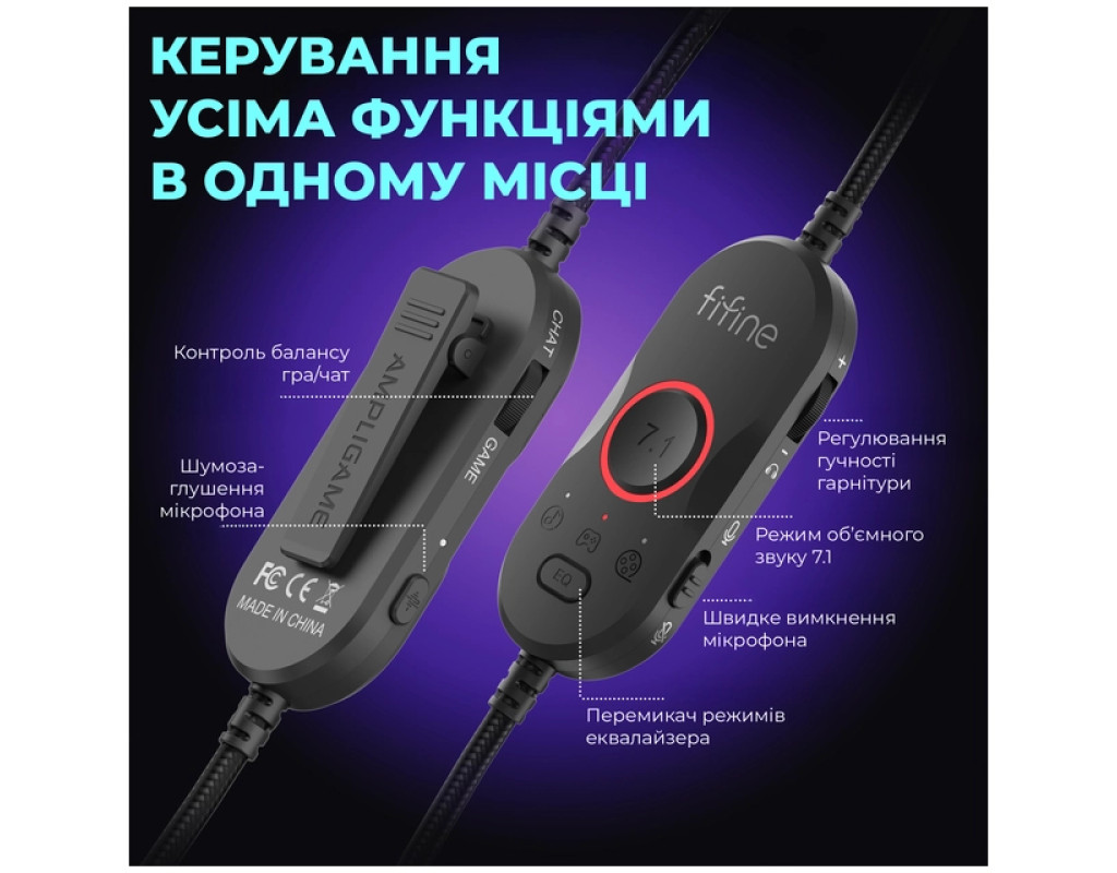 Гарнитура также заботится о качестве вашего общения. Встроенная система шумоподавления микрофона (Mic-Noise Reduction) активируется в один клик, эффективно убирая фоновые шумы (например, щелчок клавиатуры или шум вентиляторов), чтобы ваш голос звучал четко и чисто. А с помощью удобной кнопки мгновенного выключения микрофона (Mic Quick Mute) вы можете временно заглушить себя одним прикосновением, не отвлекаясь от игры. Для идеального баланса между геймплеем и общением в команде интегрирована отдельная регулировка соотношения громкости игры и чата (Game & Chat Ratio Adjustment). Вы сможете точно настроить, насколько голоса союзников будут громче звуков игры, или наоборот, чтобы ничего не пропустить. Управление гарнитурой интуитивно понятно и удобно. С помощью встроенного регулятора громкости можно легко настроить общий уровень звука. А подсветка с 11 RGB эффектами позволит персонализировать ваш девайс и создать неповторимую атмосферу. Выбирайте между статическим цветом, динамическим градиентом или эффектом дыхания, чтобы гарнитура идеально вписалась в вашу геймерскую установку. Fifine Ampligame H16 – это не просто гарнитура, а ваш надежный помощник в мире игр. Она сочетает мощный звук 7.1, удобное управление, чистоту общения и яркий дизайн, чтобы обеспечить вам комфорт и преимущество в любой виртуальной битве. |