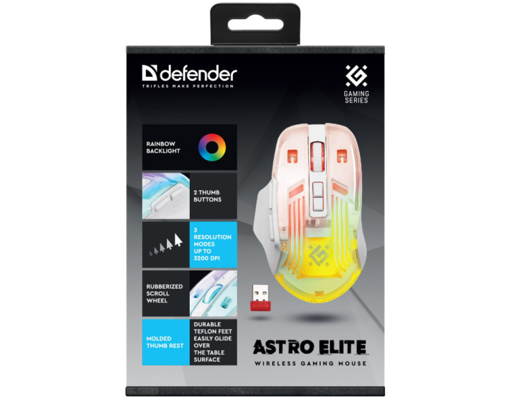 | Беспроводная игровая мышь Defender Astro Elite GM-056 LED Wireless White (52056) — это воплощение высоких технологий и эстетичного дизайна в одном устройстве. Она создана для геймеров, которые ценят не только качество и функциональность, но и уникальный внешний вид. Белый корпус мыши с прорезиненным покрытием обеспечивает комфорт при длительных игровых сессиях, предоставляя приятные тактильные ощущения. Оснащённая оптическим сенсором, мышь может похвастаться разрешением до 3200 dpi с тремя режимами настроек — 1200, 2400 и 3200 dpi. Это позволяет адаптировать скорость курсора под различные игры и задачи, облегчая комфортный переход от точного прицеливания к быстрым манёврам. Одной из ярких особенностей этой модели является наличие 7 программируемых кнопок, которые позволяют идеально настроить мышь под личные требования и стили игры. Такая функциональность открывает возможность быстрого доступа к необходимым командам и действиям в динамичных игровых сценах. Благодаря разноцветной подсветке, мышь приобретает ещё более стильный вид, позволяя выбрать именно то сочетание оттенков, которое дополнит ваше игровое настроение. При этом встроенный режим ECO автоматически регулирует подсветку, помогая экономить заряд аккумулятора. Технология беспроводной связи на частоте 2.4 ГГц обеспечивает стабильное подключение с радиусом действия до 10 метров. Это гарантирует стабильность и точность в выполнении ваших команд без задержек и сбоев, отсутствие которых так важно в критических игровых моментах. Интегрированный аккумулятор с ёмкостью 500 мА*ч обеспечивает до 30 часов активного использования без необходимости постоянной подзарядки. Благодаря специфическим тефлоновым ножкам мышь плавно и беспрепятственно скользит, устраняя проблему лишнего трения и повышая общее качество игрового процесса. Для более глубокой настройки возможностей мыши используйте платформу Defender Game Center, которая позволяет расширять функционал и делать ваш игровой опыт индивидуальным. Даже USB-приёмник имеет специальный отсек для удобного хранения, что добавляет удобства и практичности при транспортировке мыши. Defender Astro Elite GM-056 — это не просто средство для игры; это инструмент, который подчёркивает ваш стиль и требования к современным технологиям. С ней каждая игра превращается в поле, где вы всегда на высоте, готовы к вызовам современного гейминга. |