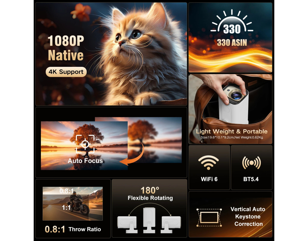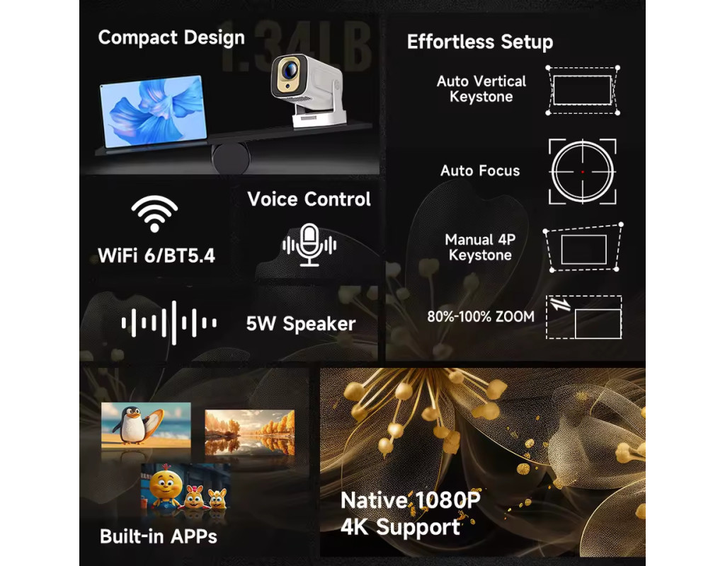 | Проектор HY310 – мини-проектор с автофокусом, поддержкой 4K и Android 11