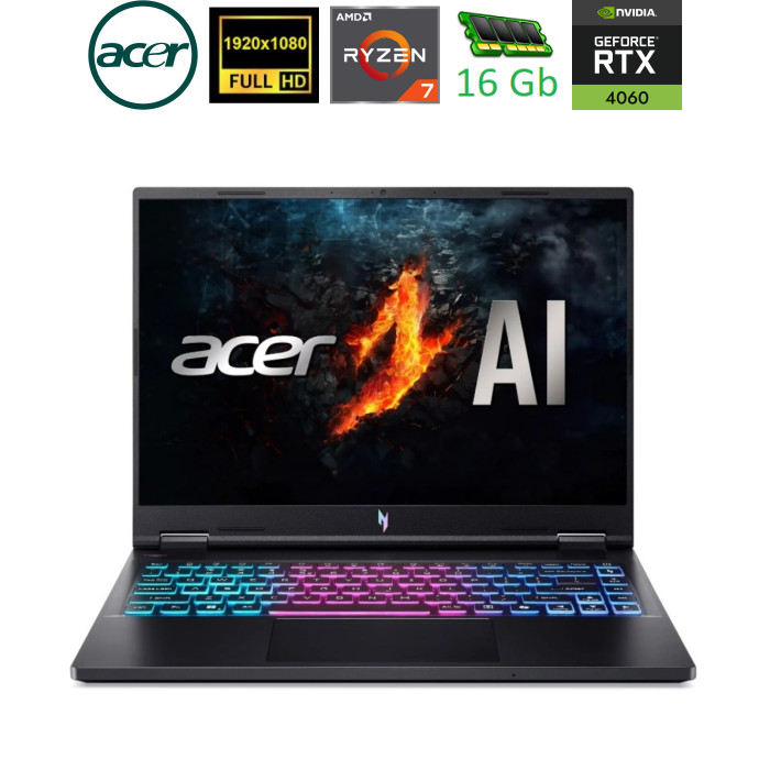 Acer Nitro 14 AN14-41 – мощный ноутбук из популярной геймерской серии Nitro, получивший передовые технологии, мощную начинку и имеющий продуманный дизайн, присущий всей линейке. Благодаря удивительному экрану 14" с разрешением WUXGA и частотой обновления 120 Гц, пользователь сможет наслаждаться игровой картинкой с высокой детализацией и насыщенными оттенками. Исключительную производительность обеспечивает центральный процессор AMD Ryzen 7 8845HS с надежной производительностью и встроенной инновационной технологией Ryzen AI, емкий накопитель и оперативная память DDR5. Вы сможете быстро приспосабливаться к новым вызовам и реализовать свой потенциал по полной, используя мощность передовых вычислений с поддержкой искусственного интеллекта для работы или развлечений. Над графикой будет работать видеокарта Nvidia GeForce RTX 4060, предлагающая колоссальный шаг к новому уровню производительности и качеству контента. Она обеспечит высокую реалистичность изображения и позволит наслаждаться каждой деталью визуального мира любимой игры. Кроме того, технология Max-Q на основе искусственного интеллекта оптимизирует производительность системы, мощность, время автономной работы и акустику для максимальной эффективности. Оцените стабильную работу ноутбука во время экстремальных игровых нагрузок и других энергоемких процессов благодаря технологии Vortex Flow и жидкой металлической термопасте. Такая система охлаждения работает более тихо и обеспечивает эффективный отвод тепла от процессора. Передовая функция Purified Voice 2.0 использует мощность искусственного интеллекта для фильтрации шумов, обеспечивая четкость голоса. В сочетании с тремя микрофонами она обеспечивает непревзойденное качество звука в трехмерном пространстве, чтобы можно было ориентироваться и определять с какой стороны атакует противник. Погрузитесь в атмосферу игрового мира благодаря клавиатуре, имеющей 4 зоны подсветки RGB. Наслаждайтесь мгновенной настройкой цветов и эффектов, отображающих ваши эмоции во время игры. Кроме того, с помощью программного обеспечения NitroSense вы сможете управлять внутренними механизмами ноутбука: изменять скорость вентиляторов, настраивать подсветку и многое другое. Acer Nitro 14 AN14-41 – ноутбук, который будет работать на самом высоком уровне производительности и обеспечит вам комфортную игровую атмосферу. |