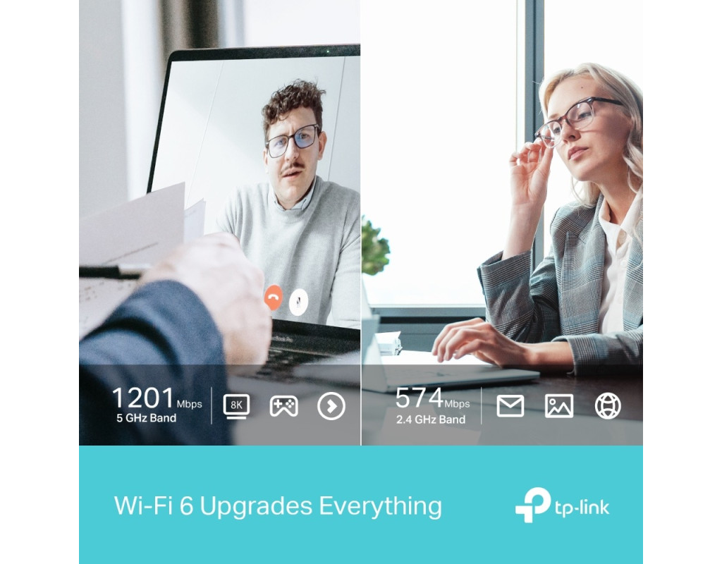 | Быстрый Wi-Fi 6 - Продолжайте гигабитный барьер со скоростью до 1201 Мбит/с (5 ГГц) + 574 Мбит/с (2,4 ГГц).