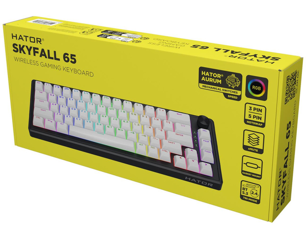 | HATOR Skyfall Wireless сочетает в себе премиальный набор технологий и современный дизайн, создавая новый стандарт комфорта и производительности. Благодаря уникальной архитектуре, усовершенствованным переключателям и широким возможностям персонализации, эта клавиатура станет идеальным выбором как профессиональных геймеров, так и тех, кто ценит качественный ввод текста и стильный вид рабочего пространства.