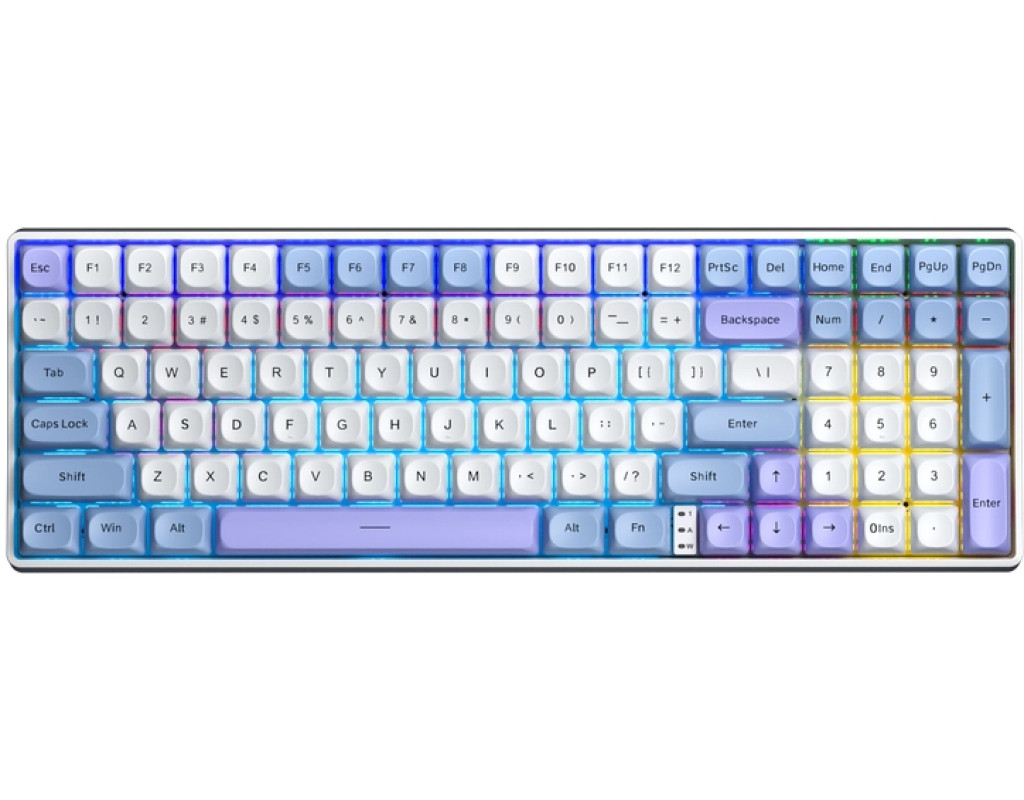 AULA S100pro KRGD Brown Switch — это компактная беспроводная игровая клавиатура с механическими переключателями, созданная для геймеров и пользователей, ценящих универсальность, стиль и производительность. Благодаря поддержке нескольких типов подключения и продвинутым технологиям, она идеально подходит для игр, работы и мультимедийных задач. Универсальное подключение и совместимость Клавиатура поддерживает три способа подключения: Bluetooth 5.0, 2.4 ГГц (через радиоадаптер) и USB Type-C, с возможностью легкого переключения между ними с помощью комбинации FN+ или переключателя. В режиме Bluetooth можно подключить до трех устройств одновременно (ПК, ноутбук, планшет, смартфон, PS, Xbox), а совместимость с Mac OS, Windows, iOS и Android делает её универсальным решением для любых задач. Превосходная точность и комфорт Оснащена механическими переключателями KRGD Brown с функцией hot-swap, которые обеспечивают точное и плавное нажатие с тактильной отдачей. Технология NKRO гарантирует регистрацию неограниченного количества одновременных нажатий без программных ошибок. Пять слоев звукопоглощающих прокладок, включая акустическую бавовну и воздушные подушки, обеспечивают тихий и мягкий звук при наборе. Цельная силиконовая накладка и индивидуальные прорези под клавиши повышают стабильность и комфорт. Стильный дизайн и RGB-подсветка Компактный пластиковый корпус в цвете белый с черным весит всего 0.877 кг, что делает клавиатуру легкой и удобной для переноски. RGB-подсветка с настраиваемыми эффектами добавляет яркости и стиля, а прозрачные или белые буквы кириллицы обеспечивают отличную видимость в темноте. Размеры (4 х 12 х 37 см) позволяют экономить место на столе. Долговечность и функциональность Встроенный аккумулятор емкостью 4000 мА*ч обеспечивает длительное время работы без подзарядки. Ресурс клавиш составляет 150 миллионов нажатий, гарантируя надежность даже при интенсивном использовании. Возможность настройки быстрых клавиш и комбинаций позволяет адаптировать клавиатуру под индивидуальные потребности.