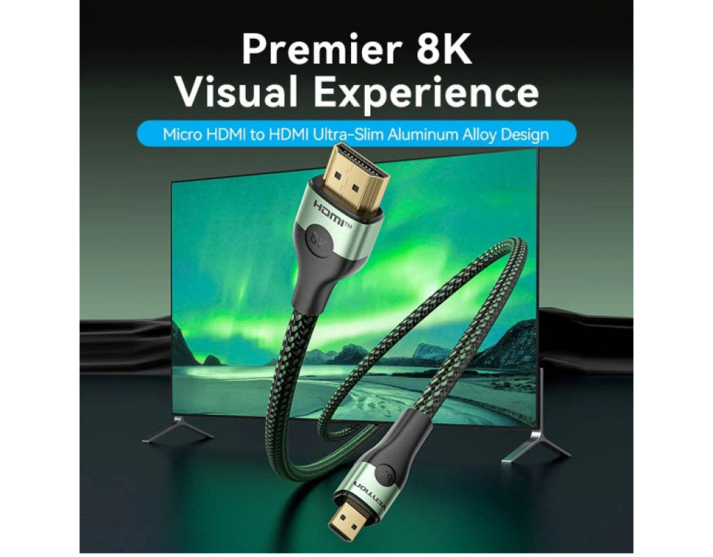 Кабель мультимедийный HDMI M to HDMI micro M 2.1m V2.0 8K 60Hz green VENTION (AGKGH)
