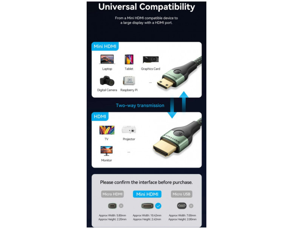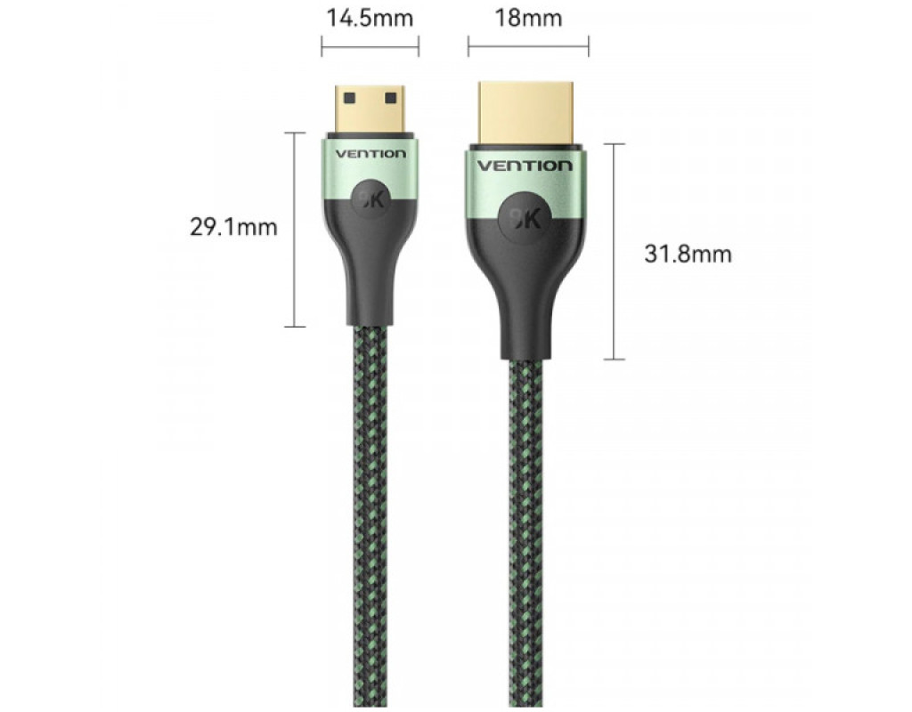 Кабель мультимедийный HDMI M to HDMI mini M 1.0m V2.1 8K 60Hz green VENTION (AGJGF)