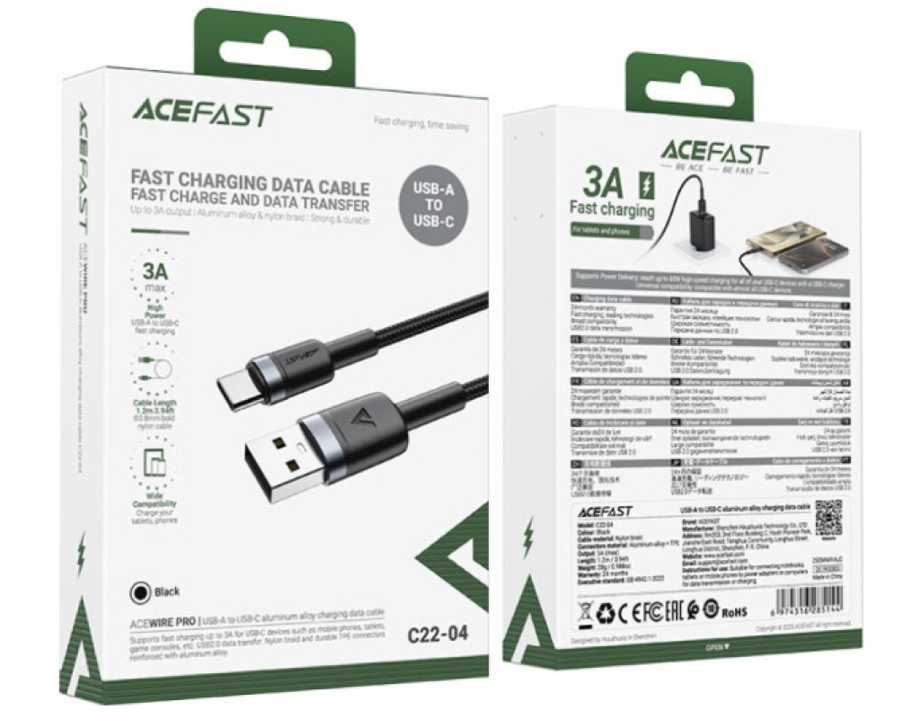 Acefast C22-04 USB 2.0 AM-Type-C M - надійний кабель для пристроїв із роз’ємом USB-C, зокрема ноутбуків, планшетів та смартфонів. Він забезпечує стабільне заряджання з зарядним струмом до 3А. Кабель Acefast C22-04 USB 2.0 AM-Type-C M оснащений стійкими до механічних пошкоджень та окислення конекторами з високоякісного алюмінієвого сплаву. Зовнішнє міцне нейлонове обплетення захищає кабель від розривів, перегинів та заплутування. |